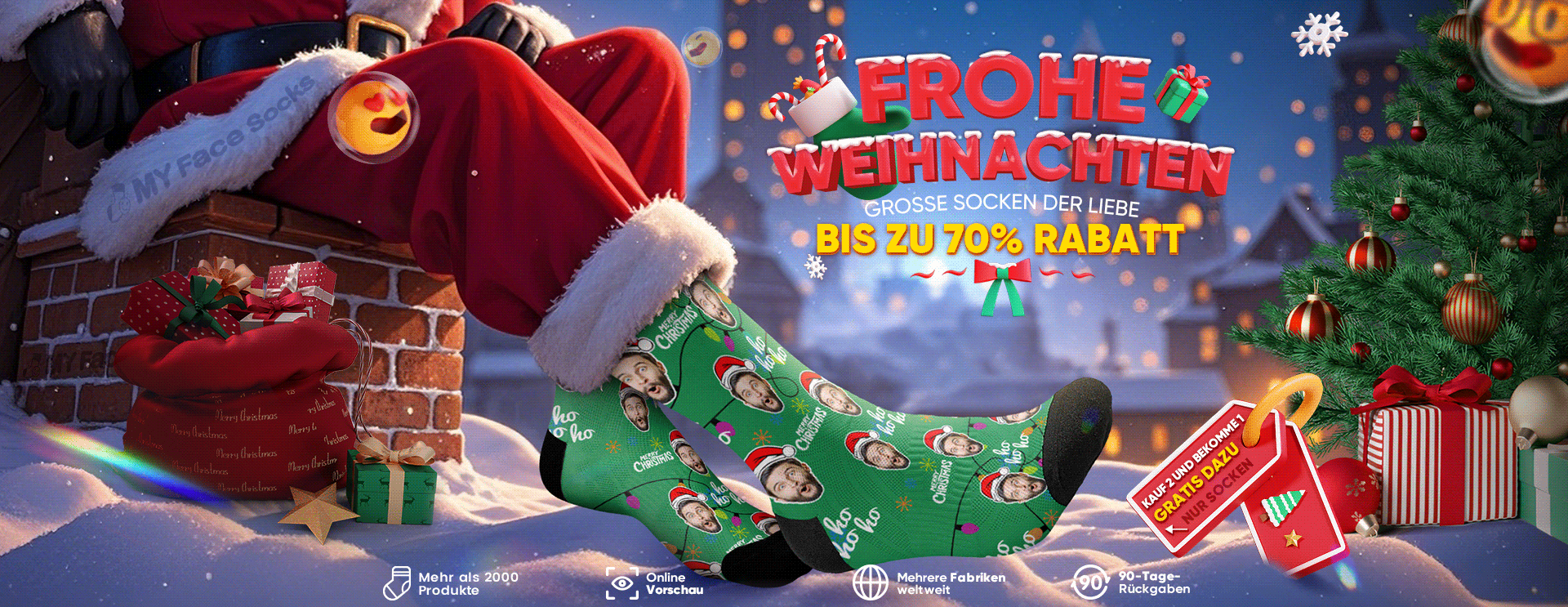 Frohe Weihnachten Socken Mit Individuellem Gesicht, Festliche Kniestrümpfe Für Urlaubsoutfit Oder Geschenk -