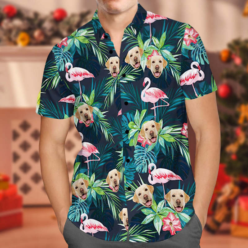 Weihnachtsgeschenke Kundenspezifisches Hawaii-hemd Mit Gesicht Kundenspezifisches Hundegesichts-hemd Blätter U. Flamingo-button-down-hemden