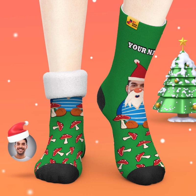 Weihnachtsgeschenke, Benutzerdefinierte Dicke Socken Foto 3d Digital Gedruckte Socken Herbst Winter Warme Socken Weihnachtszwerg Pilze