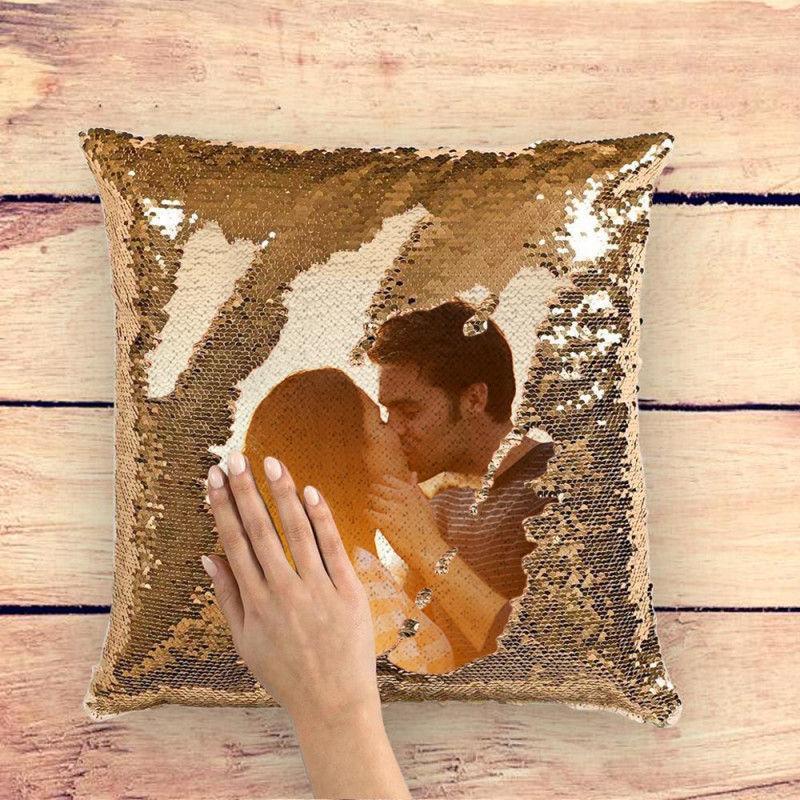 • Personalisiertes Fotokissen mit magischen Pailletten
