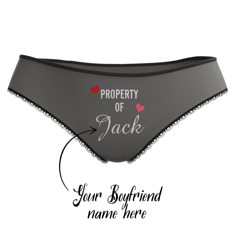 Frauen personalisierte "Property of" Name Herz Tanga Panty