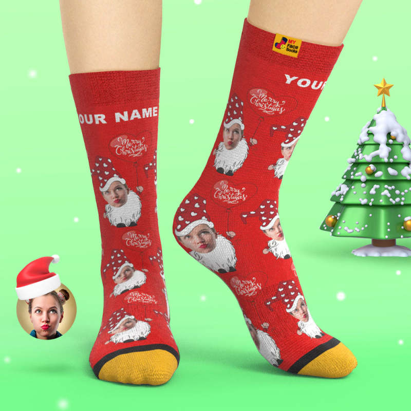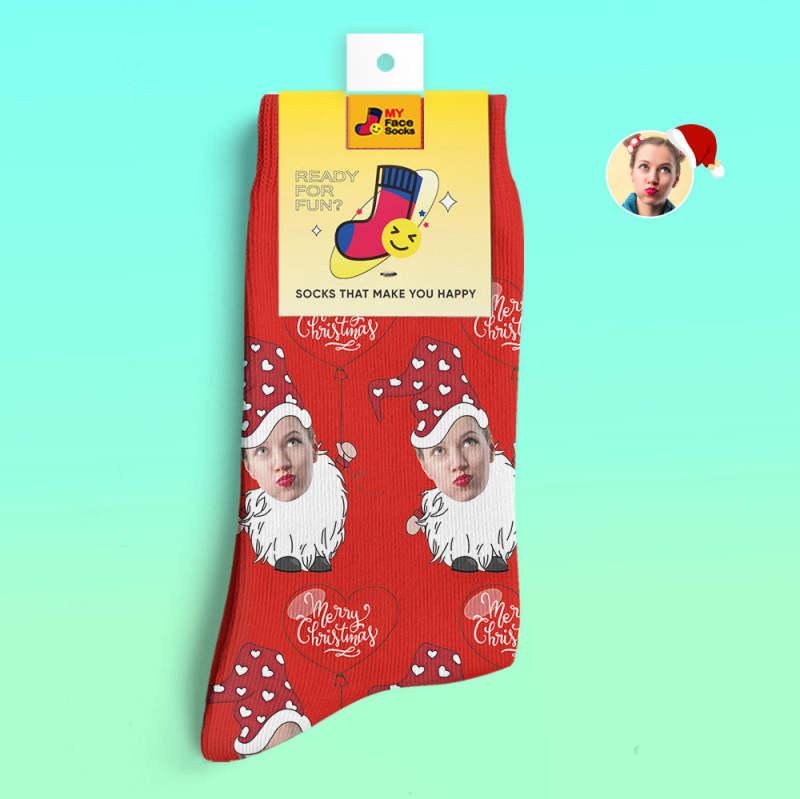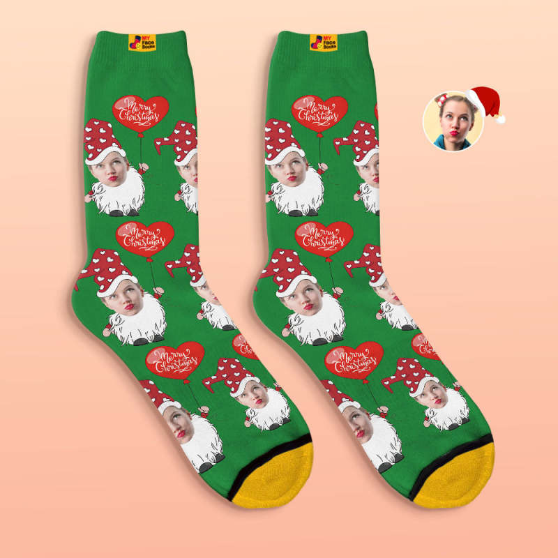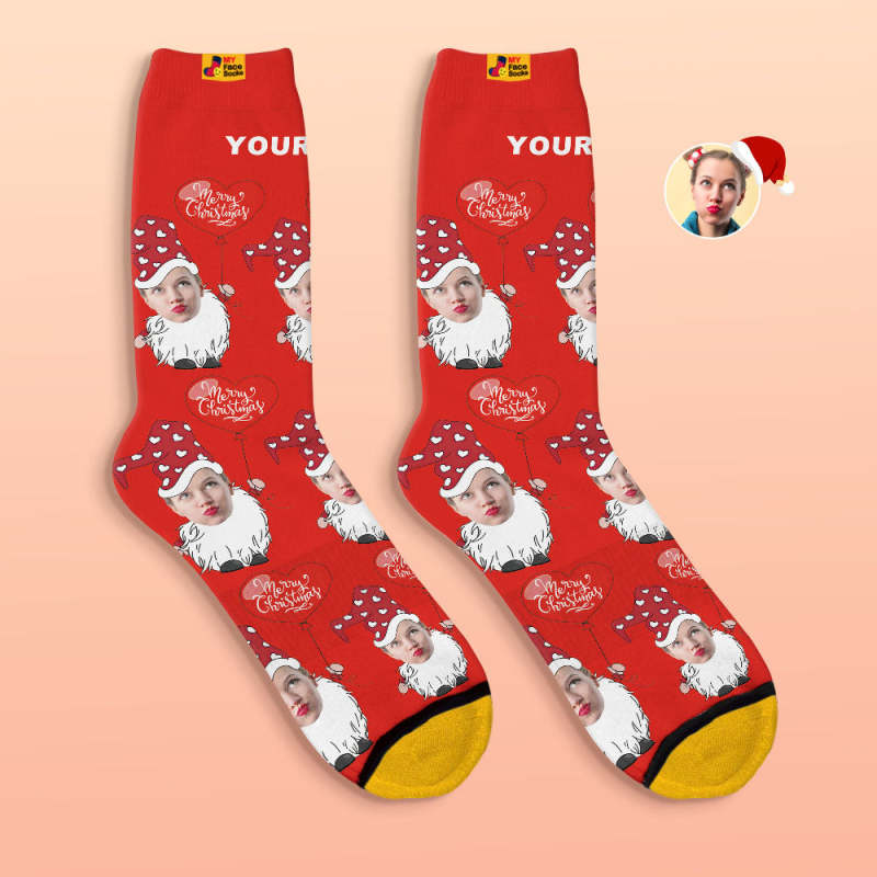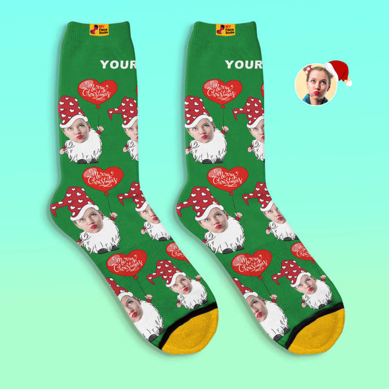 Benutzerdefinierte 3d Digital Gedruckte Socken Weihnachtszwerg Mit Herzförmigen Ballon Weihnachtssocken