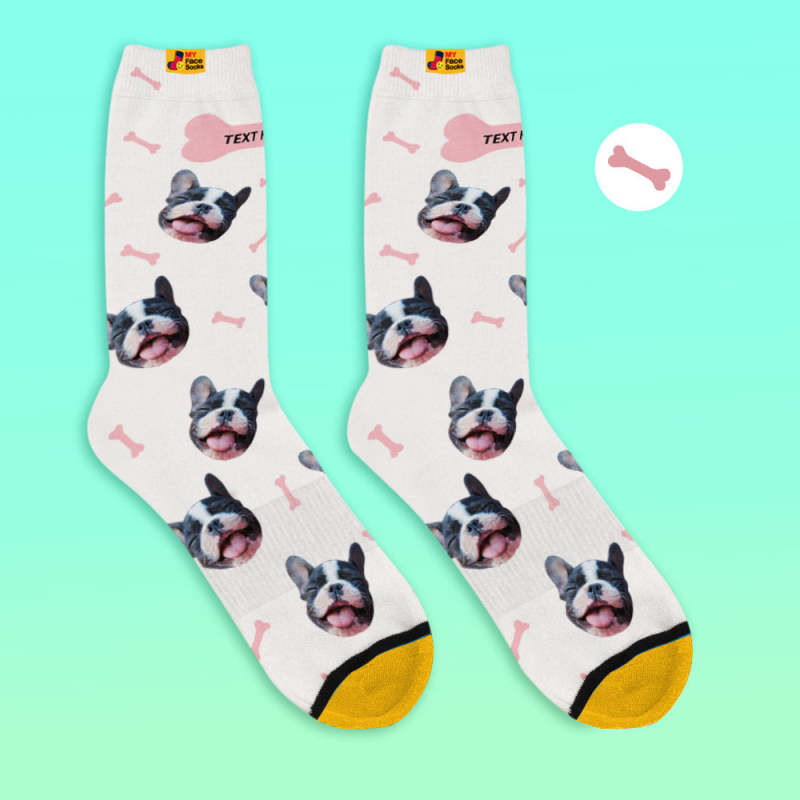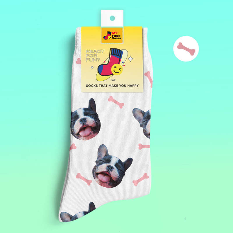 Benutzerdefinierte 3D-Socken mit Digitaldruck Meine Gesichtssocken Fügen Sie Bilder und Namen hinzu - Knochen