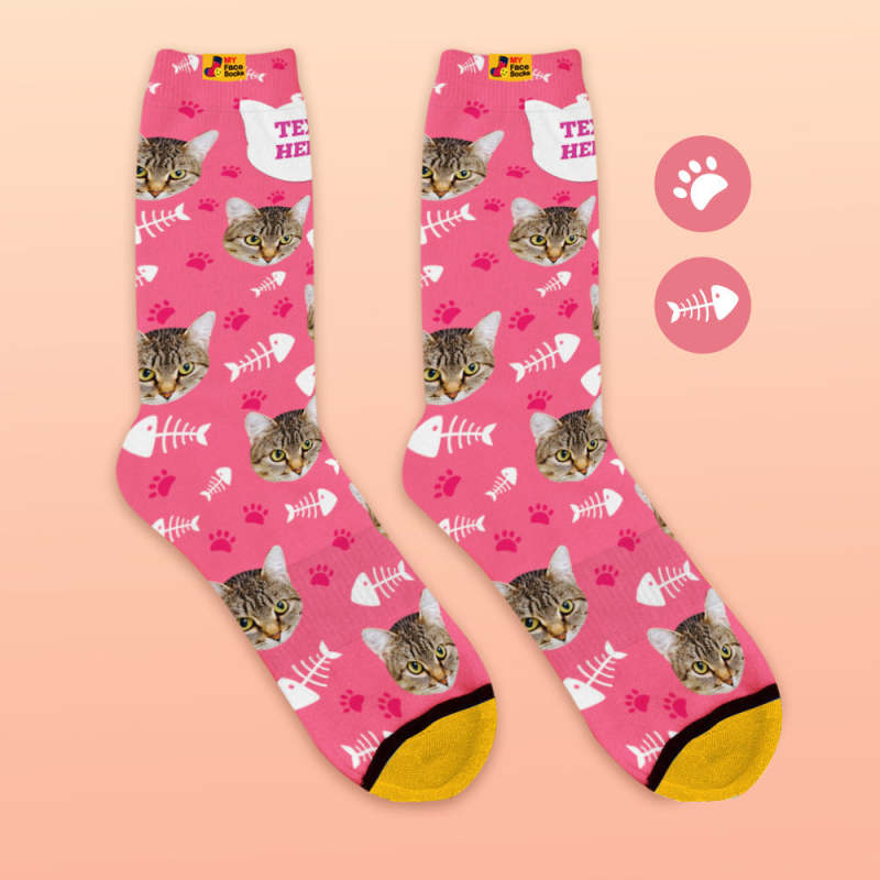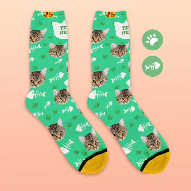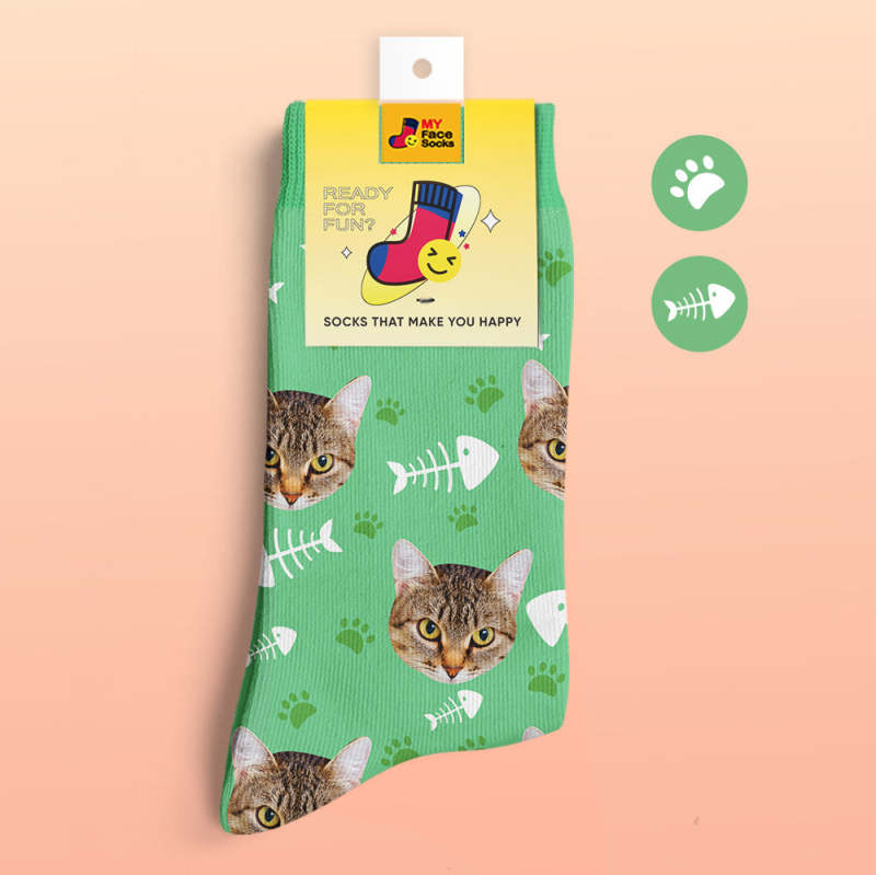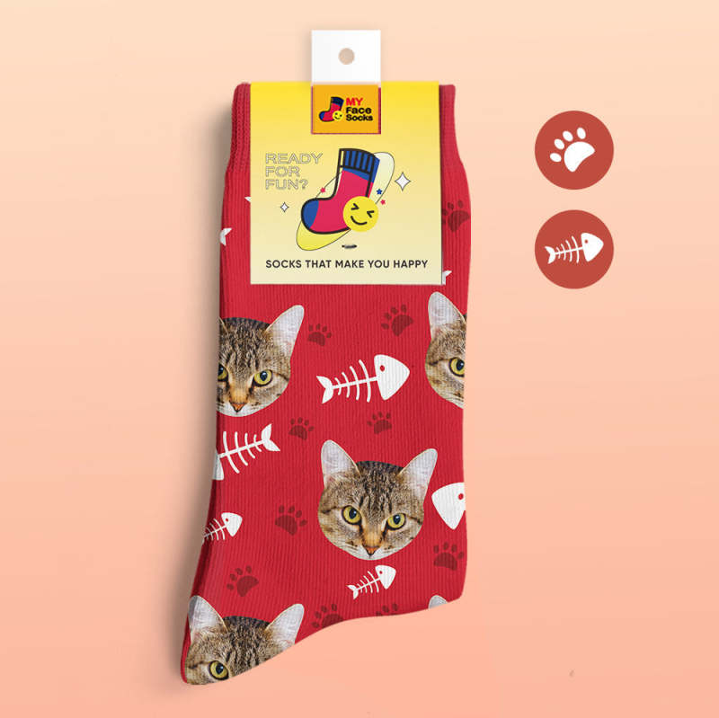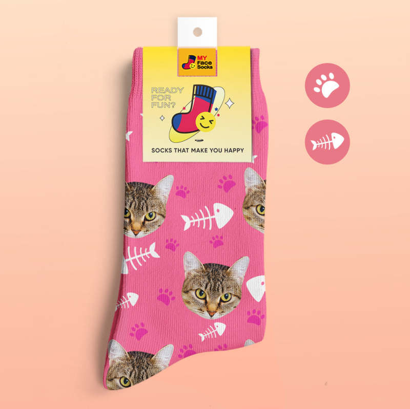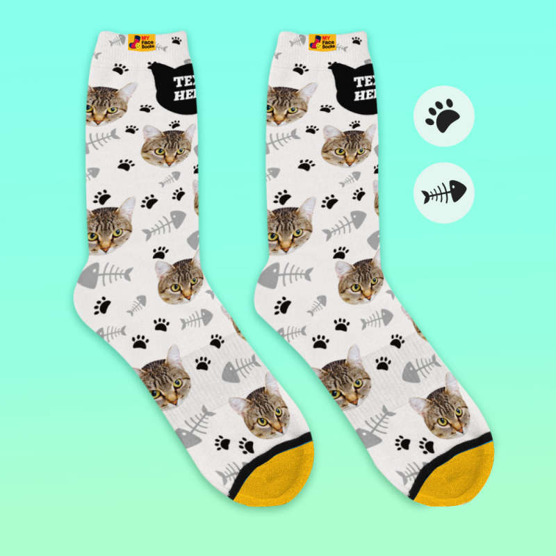 Benutzerdefinierte 3D-Socken mit Digitaldruck Meine Gesichtssocken Fügen Sie Bilder und Namen hinzu - Katze