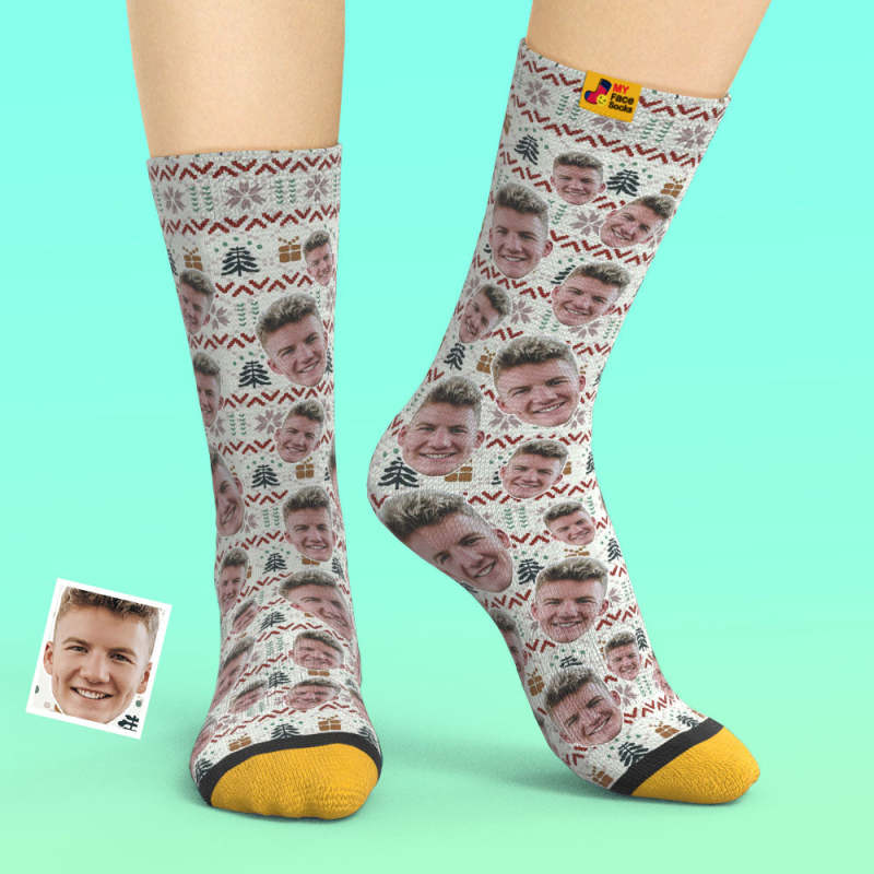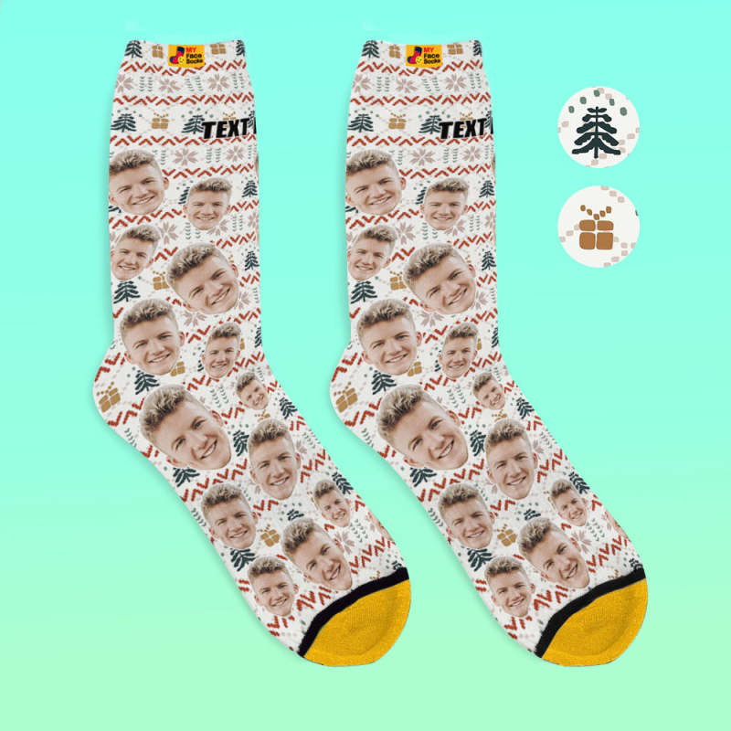 Benutzerdefinierte 3d Digital Gedruckte Socken My Face Socken Fügen Sie Bilder Und Namen Hinzu - Weihnachtsstrickmuster