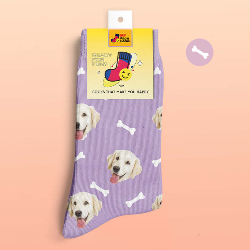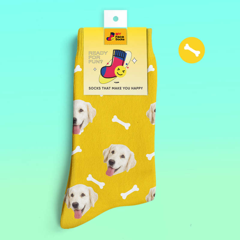 Benutzerdefinierte 3D-Socken mit Digitaldruck Meine Gesichtssocken Fügen Sie Bilder und Namen hinzu - Hundeknochen