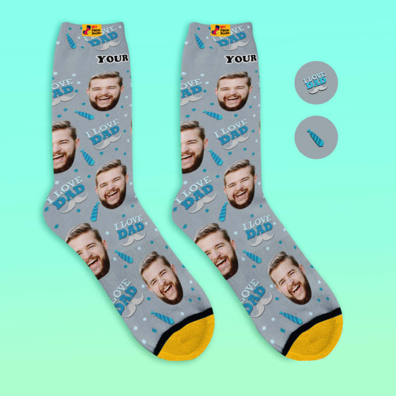 Benutzerdefinierte 3D-Socken mit Digitaldruck Meine Gesichtssocken Fügen Sie Bilder und Namen hinzu - Ich liebe meinen Vater