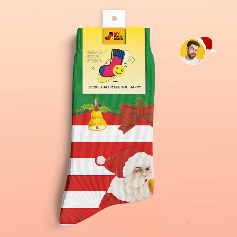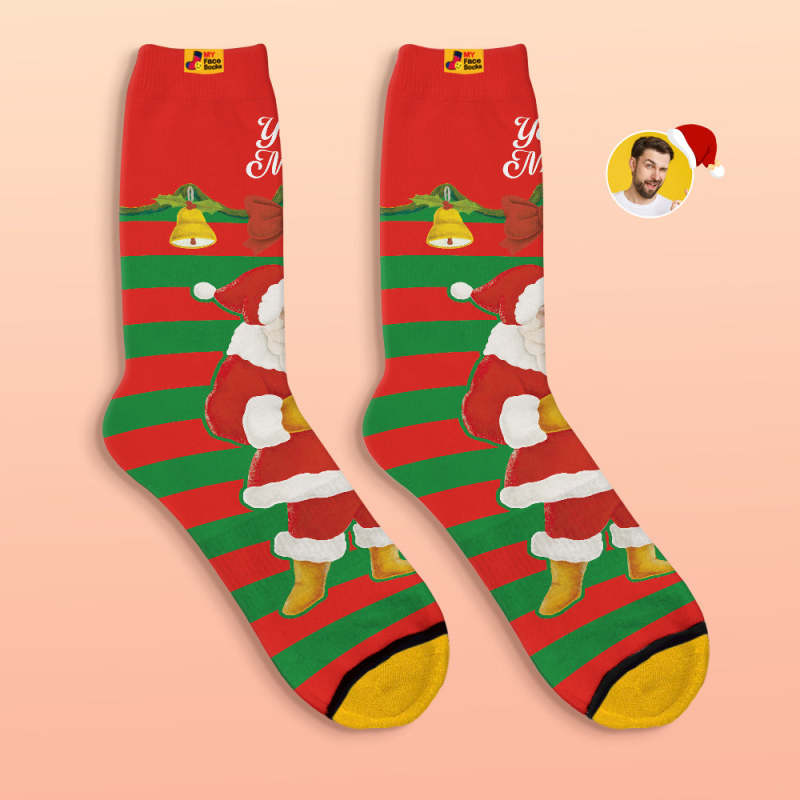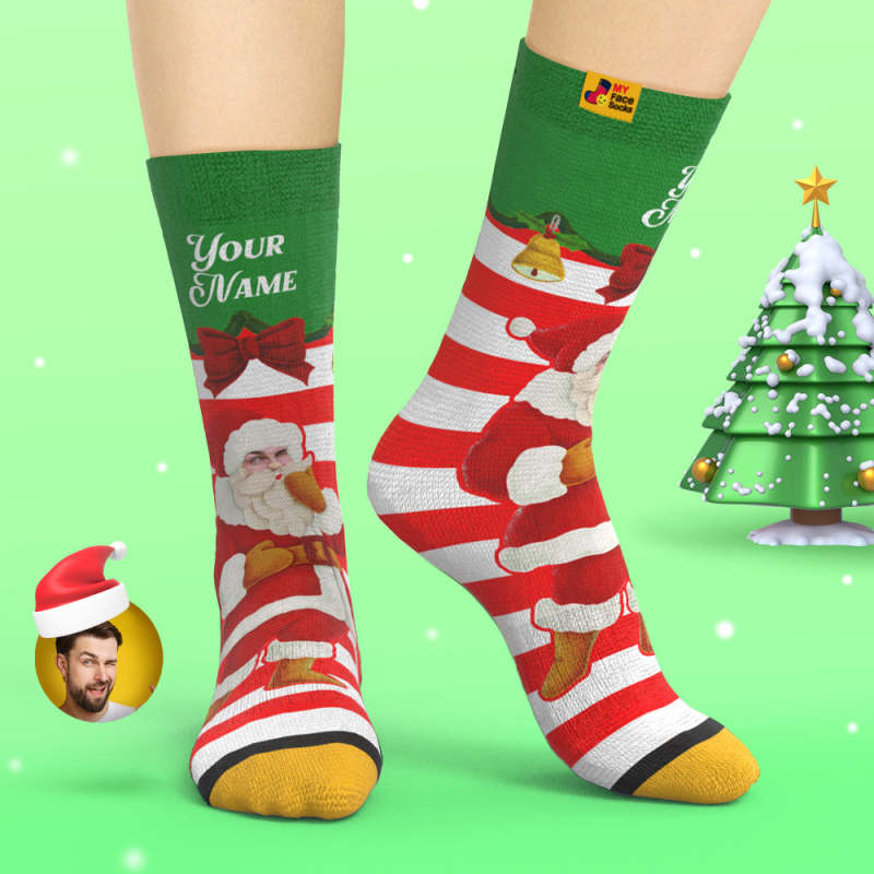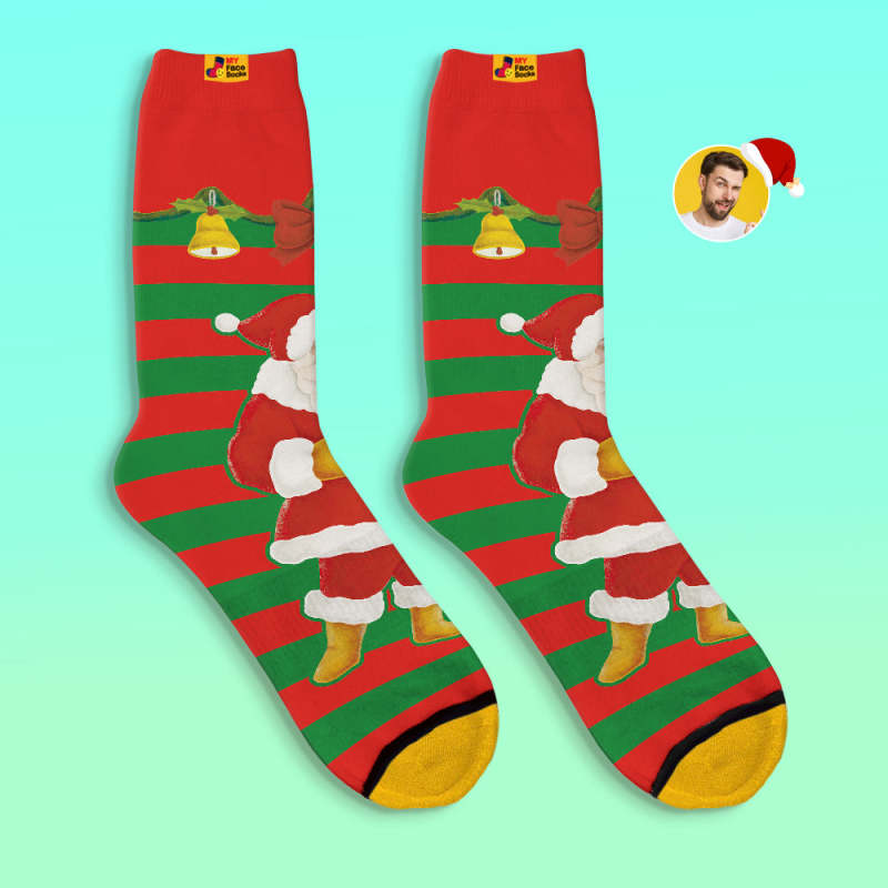 Benutzerdefinierte 3d Digital Gedruckte Socken Weihnachtsmann Weihnachtsglocken Socken