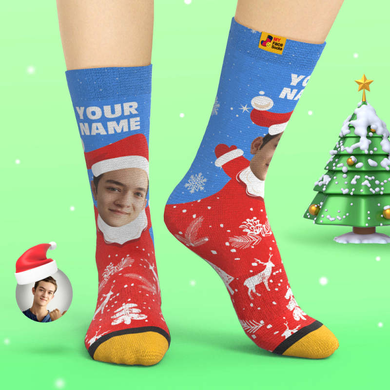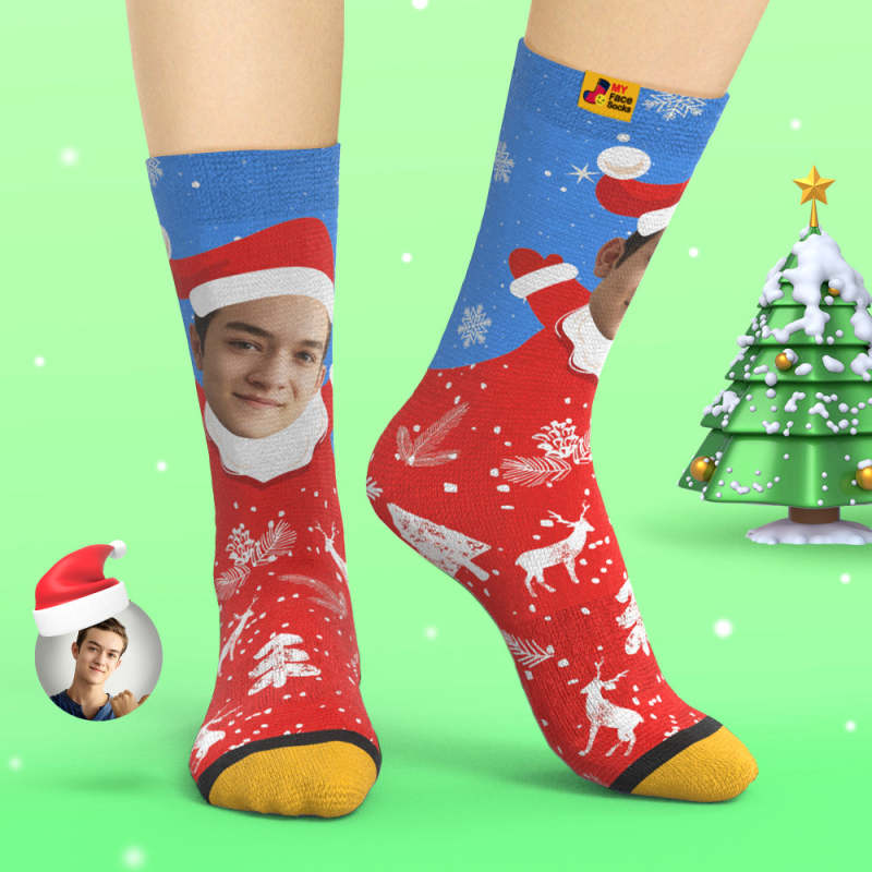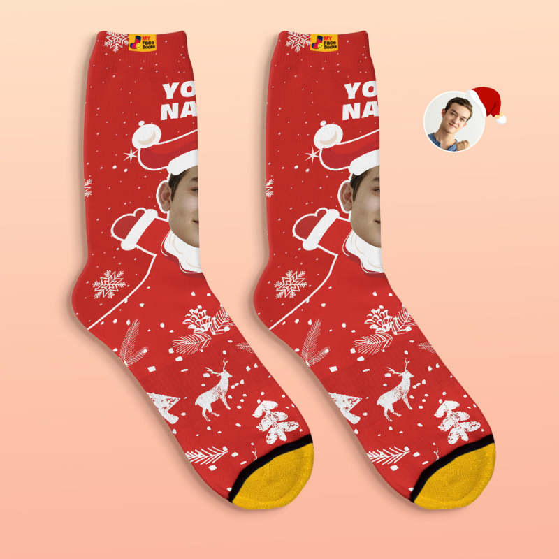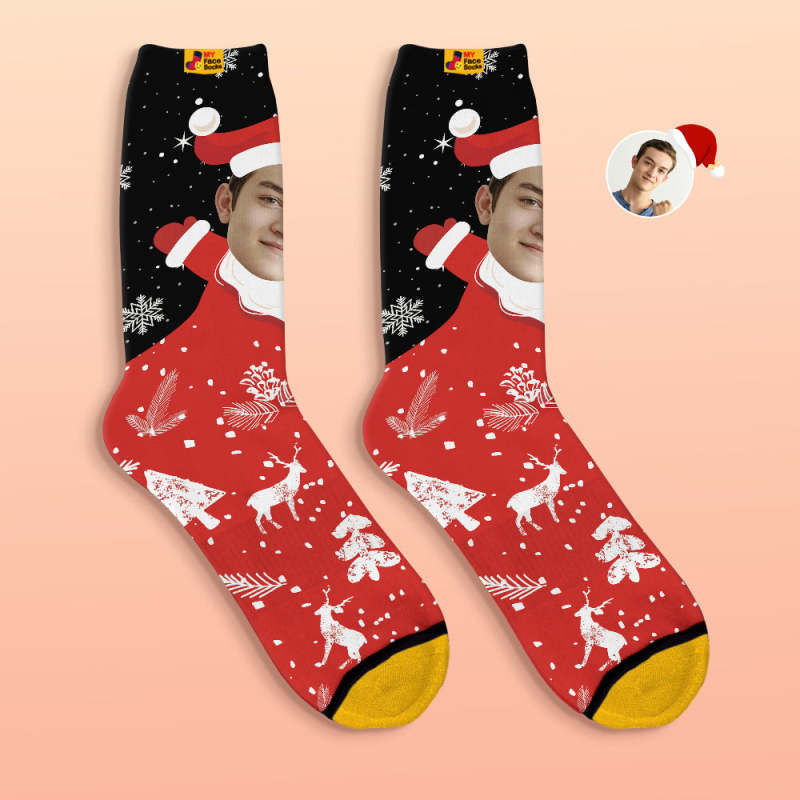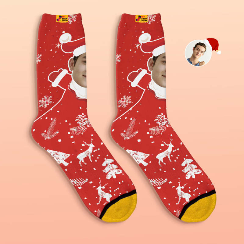 Benutzerdefinierte 3d Digital Gedruckte Socken Schnee Santa Happy Face Socken Weihnachtsgeschenk