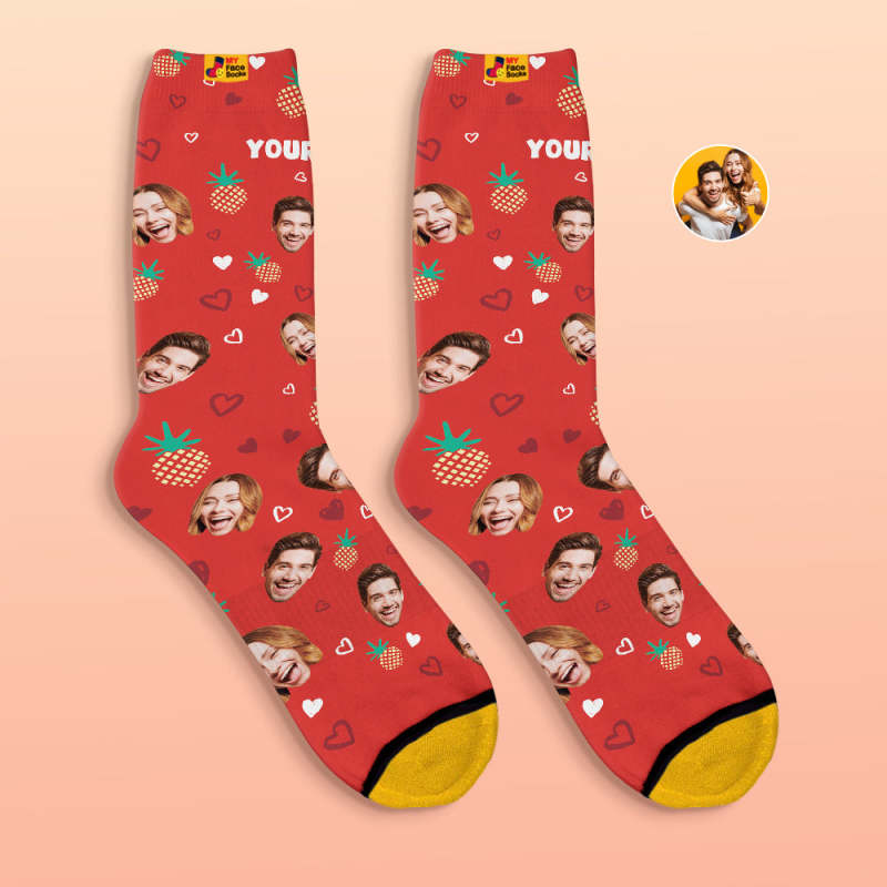 Benutzerdefinierte 3d Digital Gedruckte Socken Valentinstag Geschenke Ananas Gesicht Socken