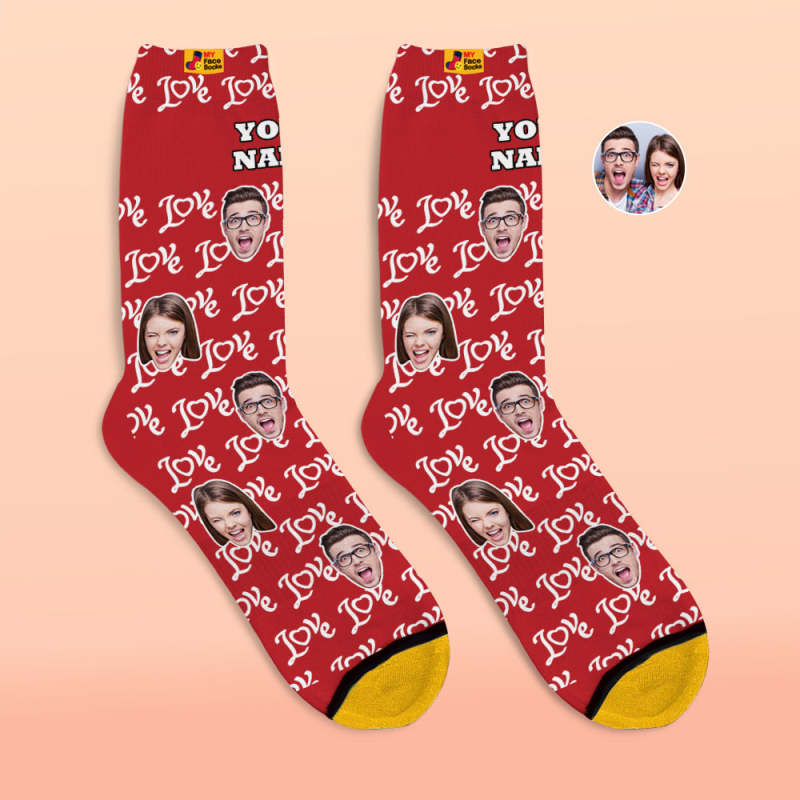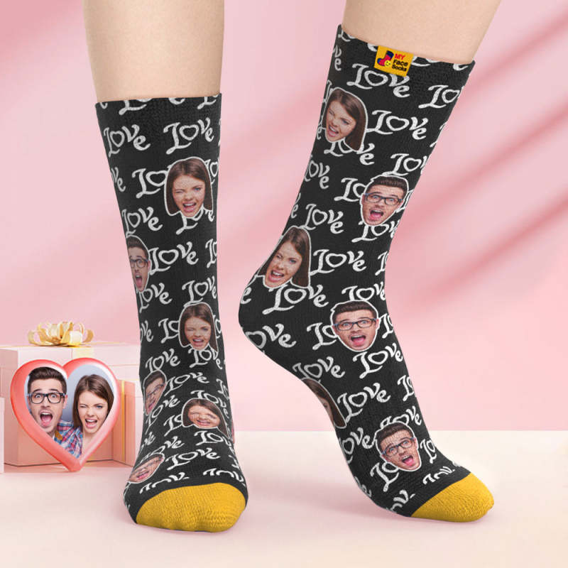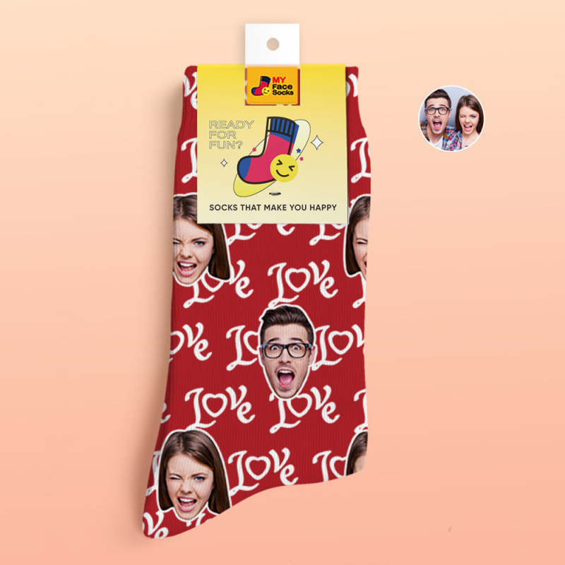 Benutzerdefinierte 3d-digitaldruck-socken Valentinstagsgeschenke Zeigen Sie Ihre Liebe Gesicht Gesicht Socken