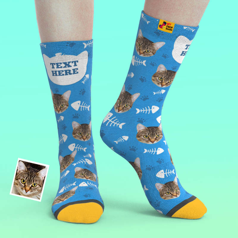 Benutzerdefinierte 3d-vorschau Socken My Face Socken Bilder Und Namen Hinzufügen - Katze