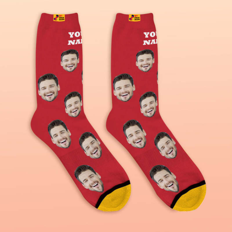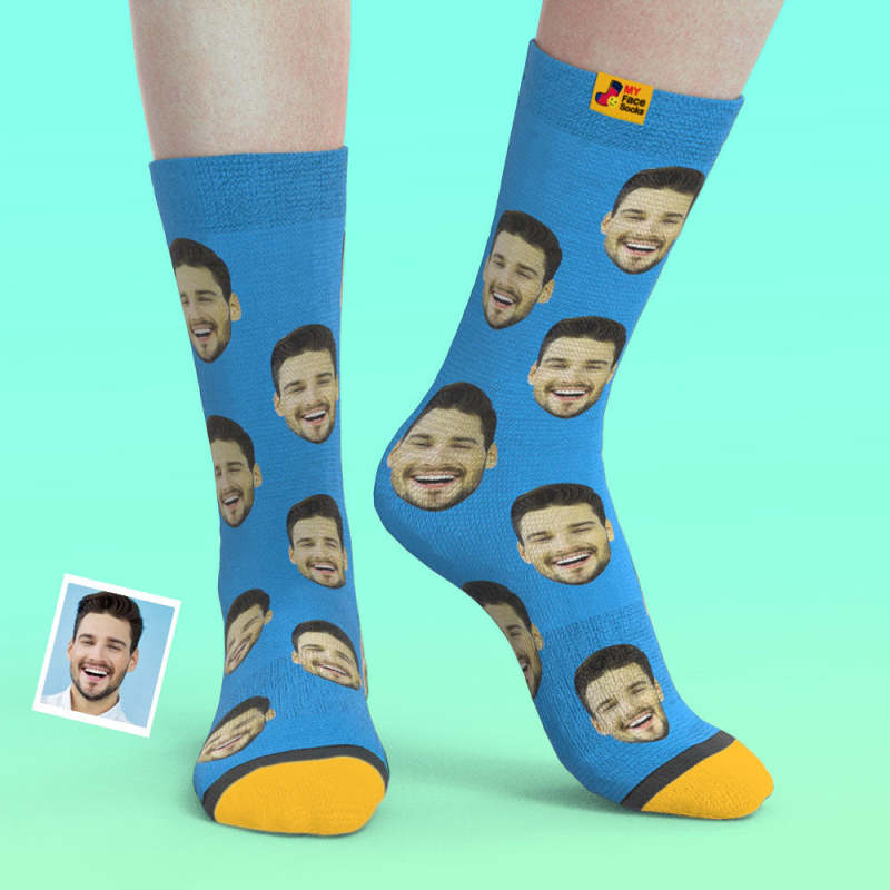 Benutzerdefinierte 3d-vorschau Socken My Face Socken Fügen Sie Bilder Und Namen Hinzu - Bunt