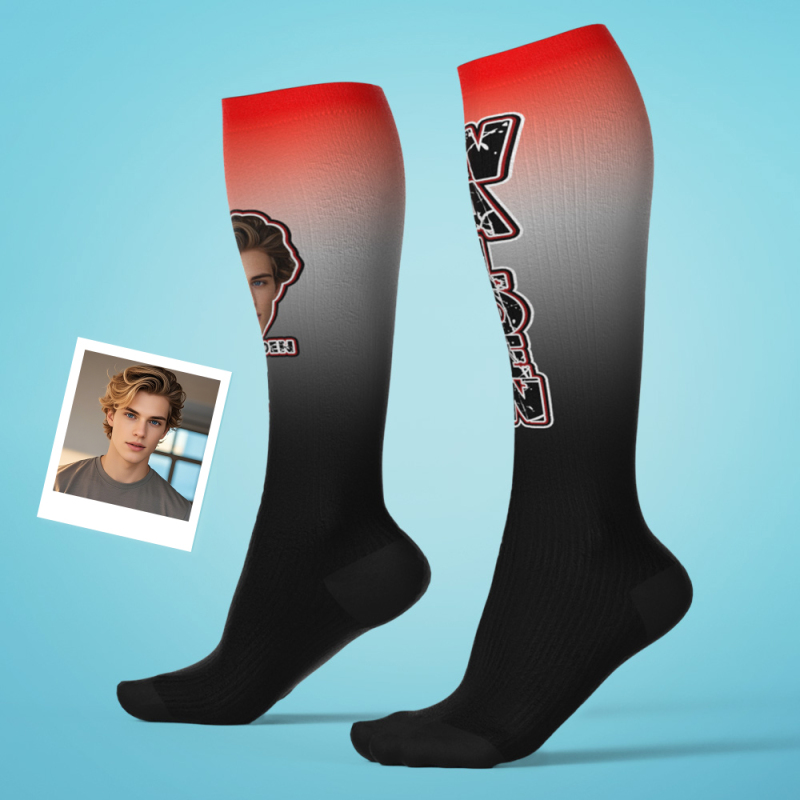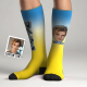 Benutzerdefinierte Sportliche Kniestrümpfe Farbverlauf Blau Und Gelb Hohe Socken Personalisierte Kompressionsstrümpfe Gesicht Und Text Kniestrümpfe