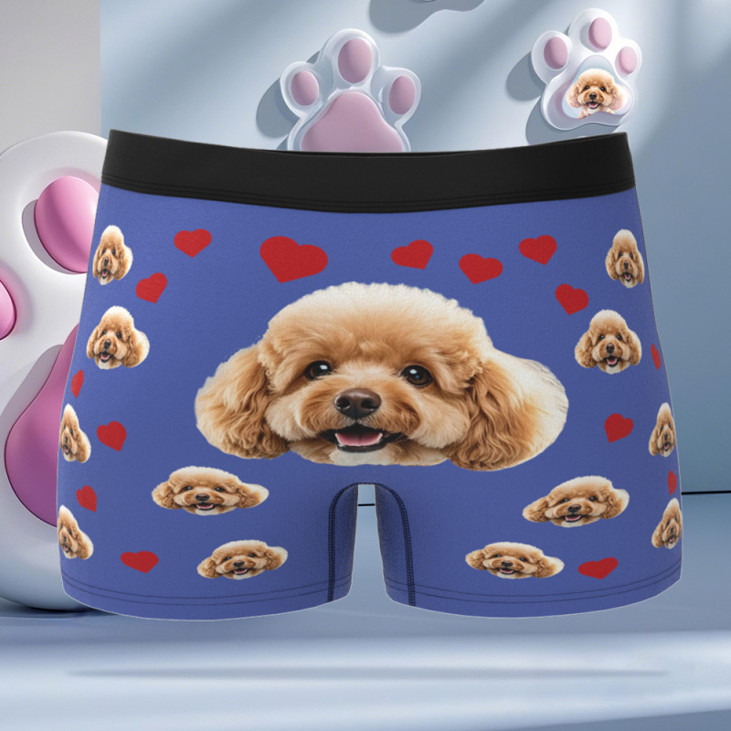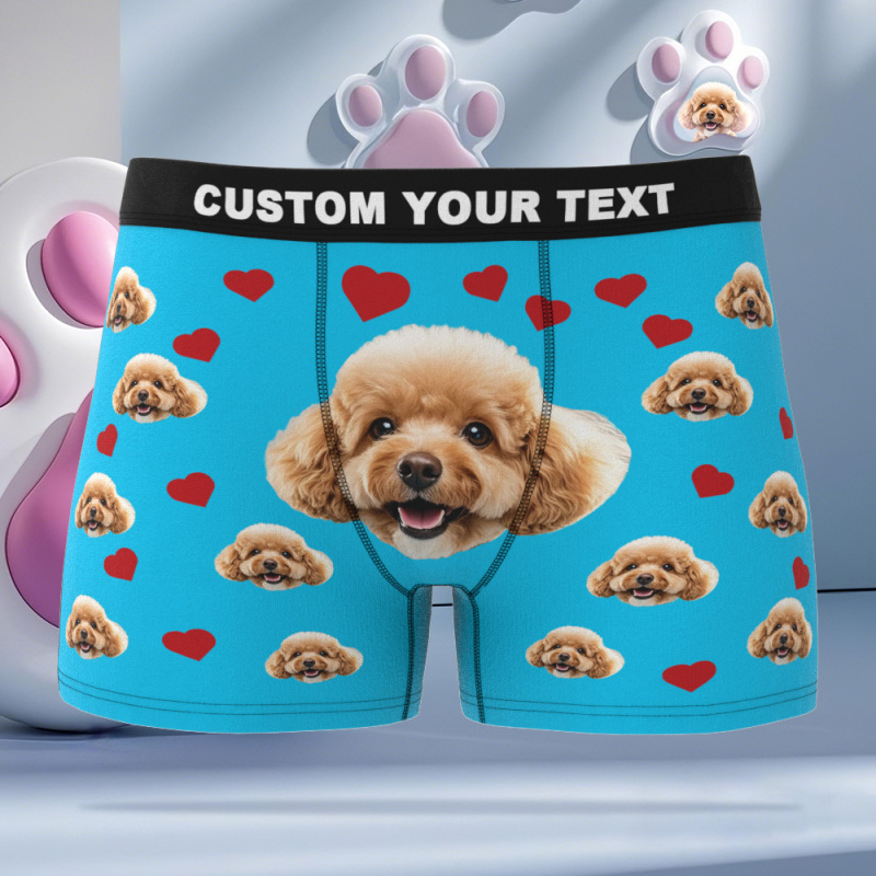 Individuelle Boxershorts Mit Haustierfoto, Herrenunterwäsche Mit Haustiergesicht, Personalisierte Rauchblaue Boxershorts Mit Tex, Geburtstagsgeschenk Für Haustiervater, Valentinstag