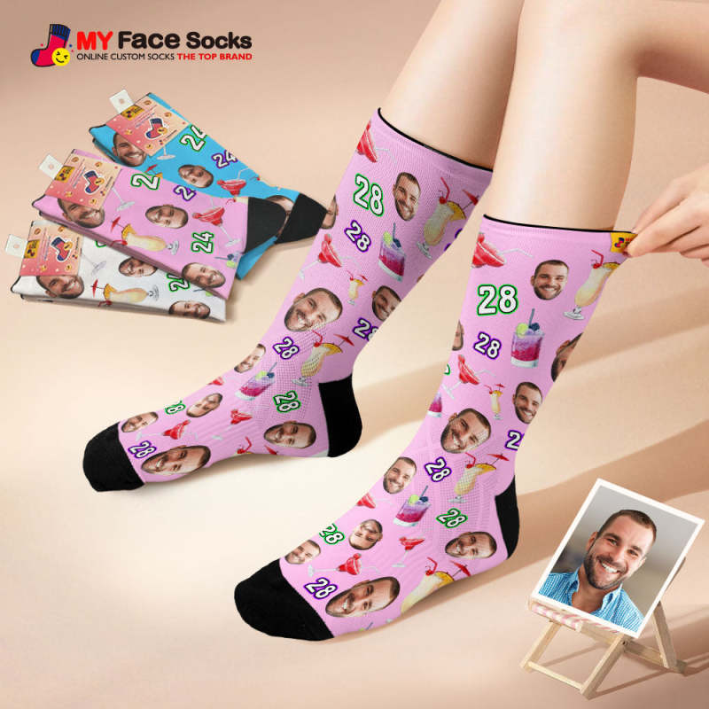 Benutzerdefinierte Atmungsaktive Gesichtssocken Zahlen- Und Gesichtssocken Geburtstagsdesserts Und Getränke