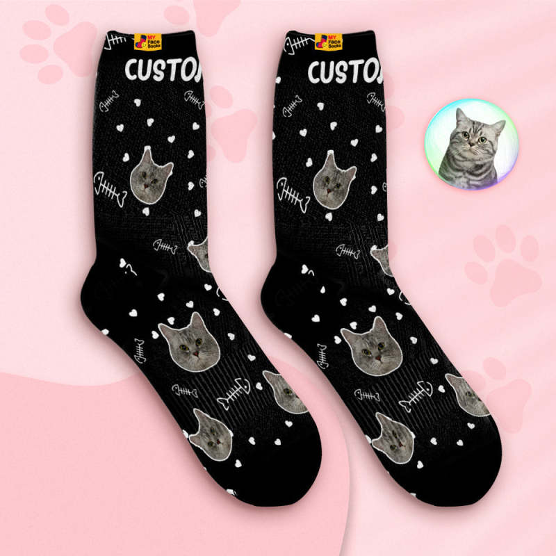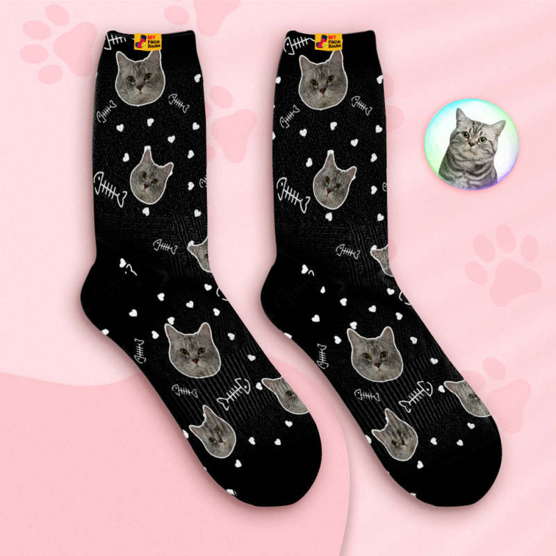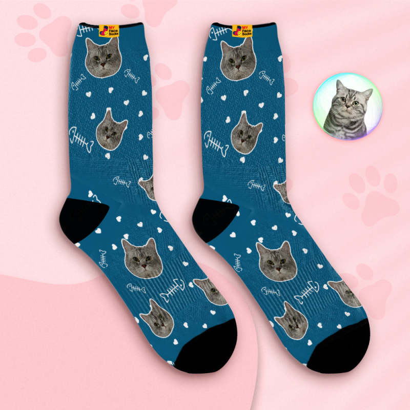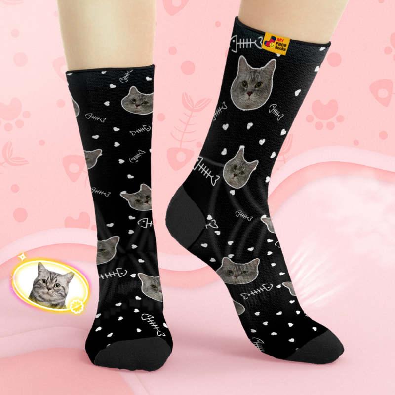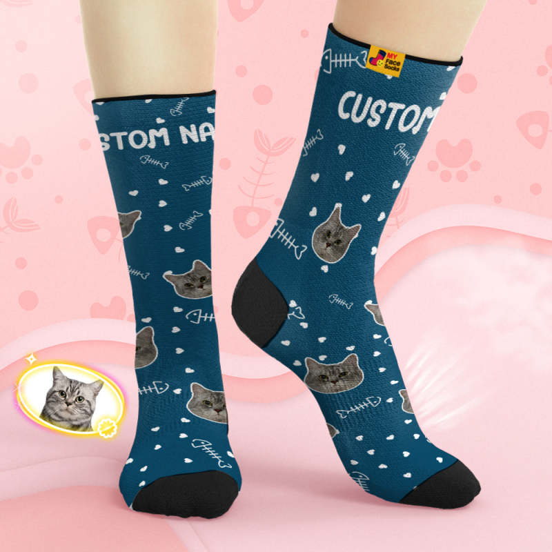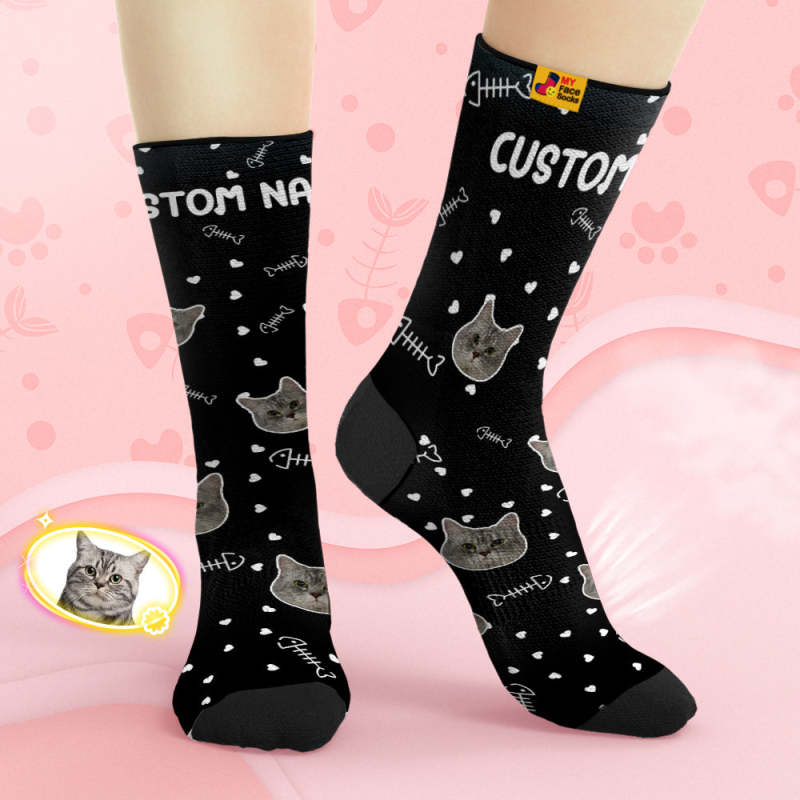 Benutzerdefinierte Atmungsaktive Gesichtssocken Personalisierte Weiche Socken Geschenke Niedliches Katzengesicht