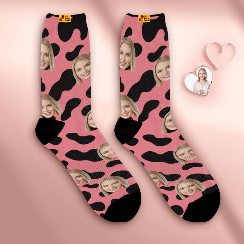 Benutzerdefinierte Atmungsaktive Gesichtssocken Personalisierte Weiche Sockengeschenke Für Liebhaber-kuhflecken