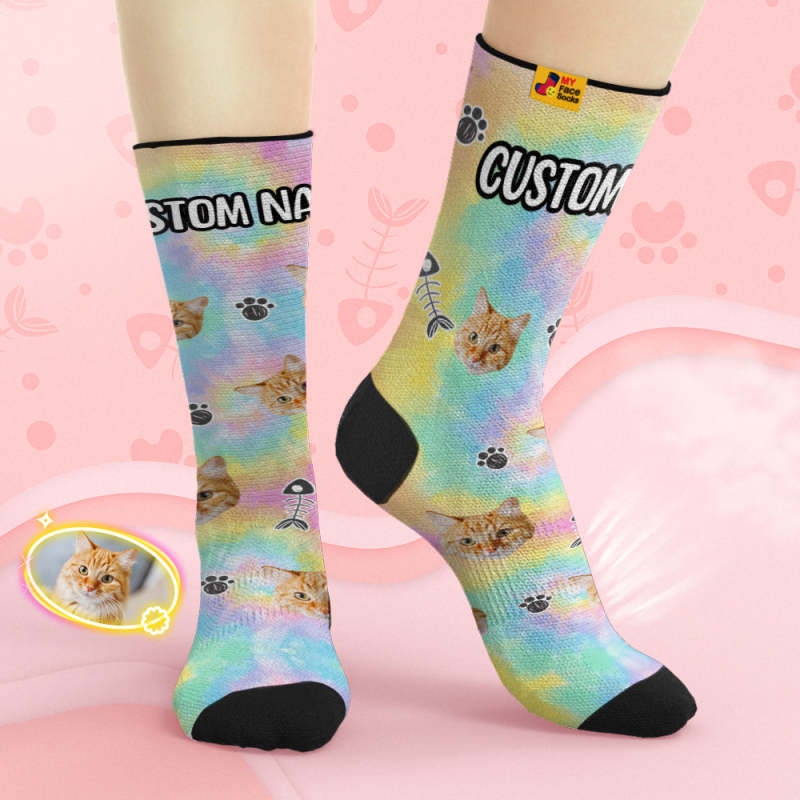 Benutzerdefinierte Atmungsaktive Gesichtssocken Personalisierte Weiche Socken Geschenke Tie-dye Pet Face