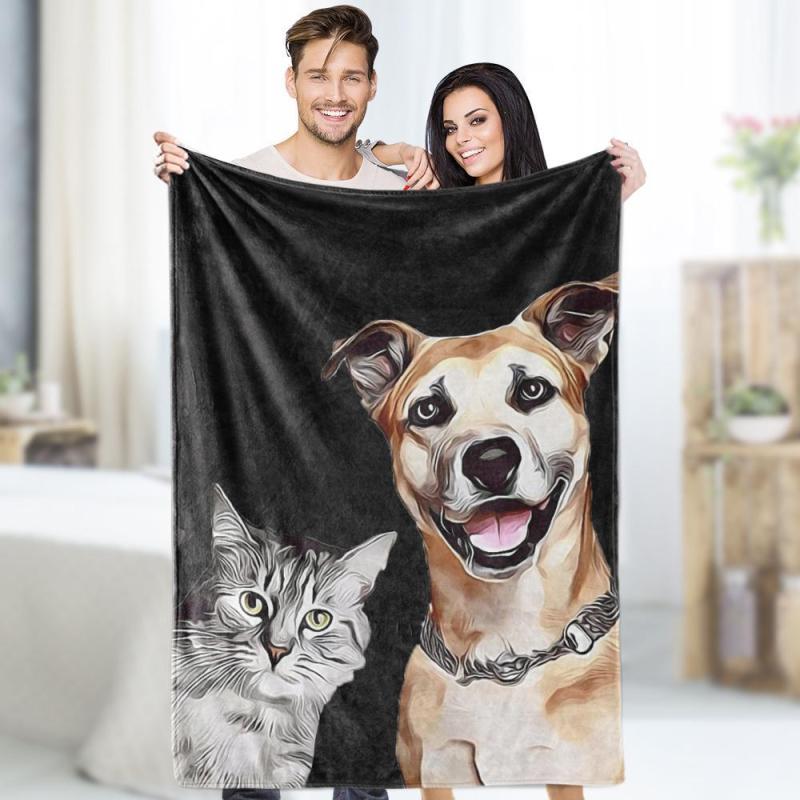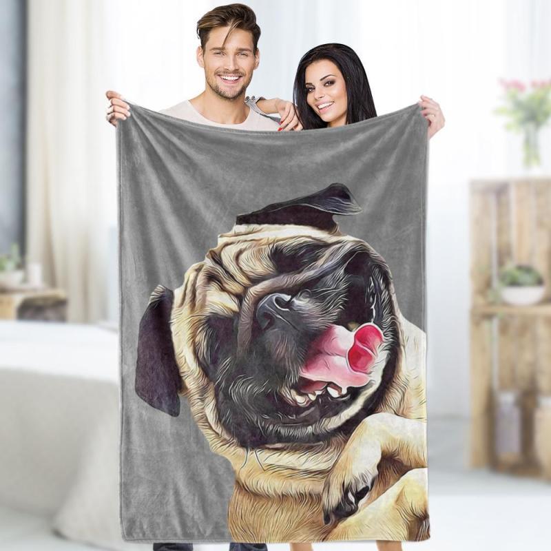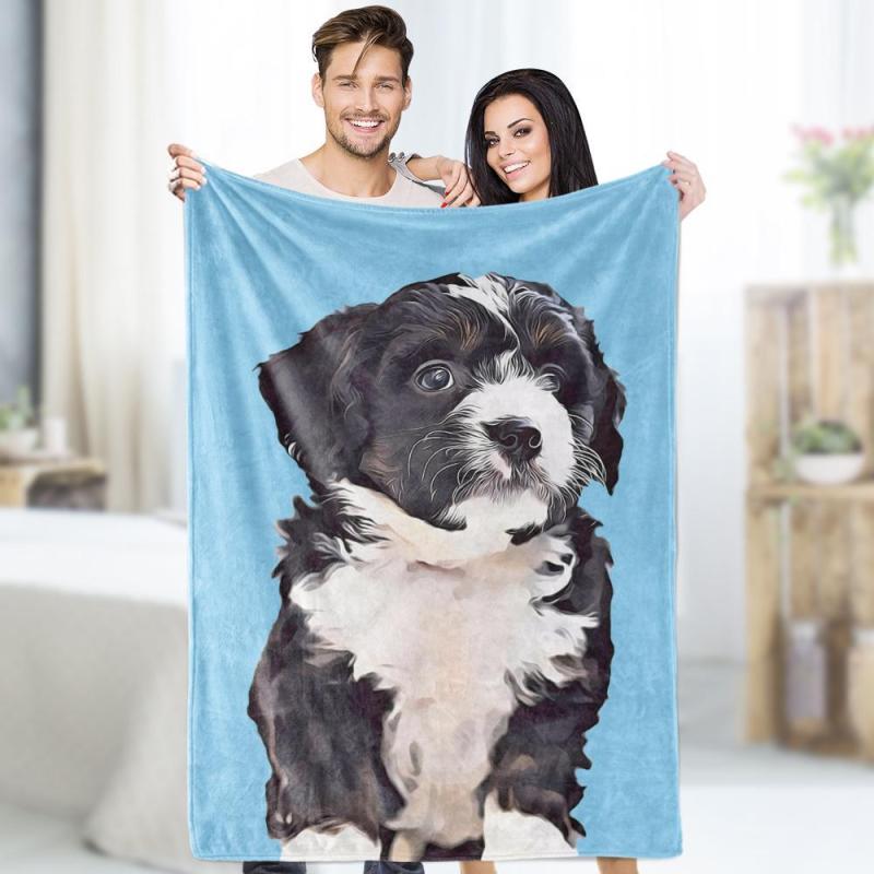 Benutzerdefinierte Hundedecken Personalisierte Haustier-Fleece-Decke gemaltes Kunstporträt