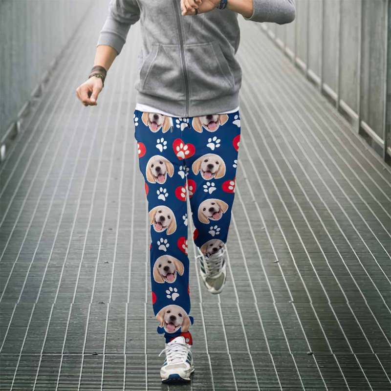 Benutzerdefinierte Hundegesicht Jogginghose Unisex Jogger Mit Herzmuster Pfote