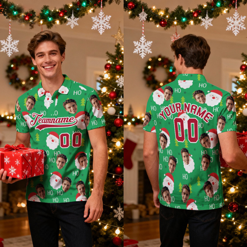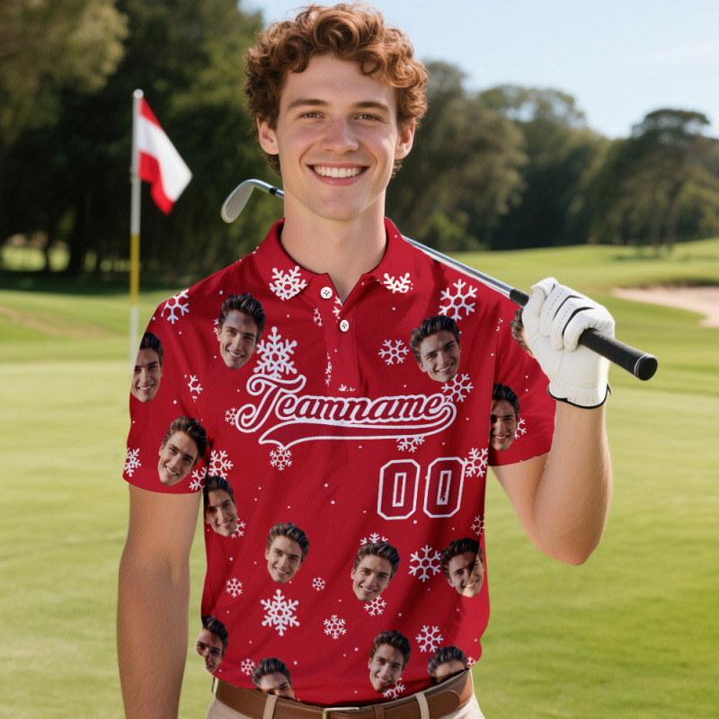 Benutzerdefinierte Gesicht Und Text Dunkelrot Schneeflocken Polo Weihnachten Weihnachtsmann Leistung Golf Poloshirt