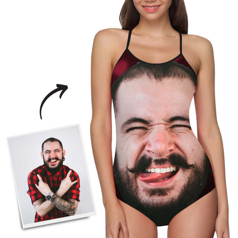 Benutzerdefinierte Gesichts-Badebekleidung Einteiler Badeanzug mit Foto-Slip für Damen Geschenk für sie - Freund Gesicht