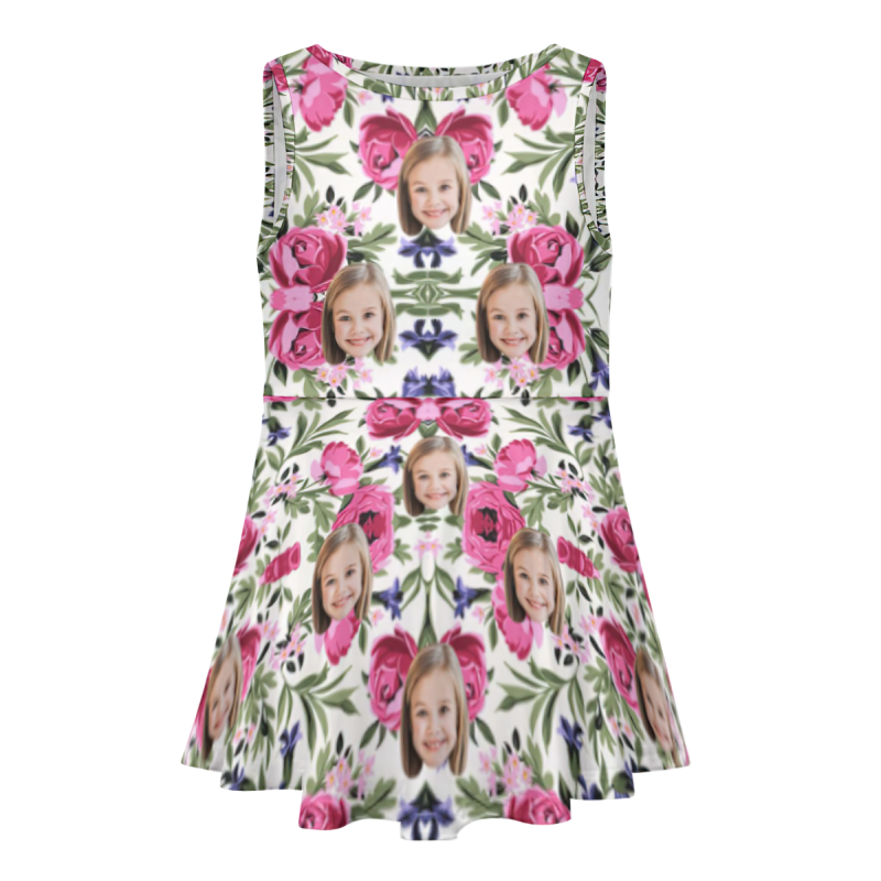 Benutzerdefiniertes Gesichtskleid, Personalisierte Sommer-hawaiian-mädchenkleider, Rosa Rosen