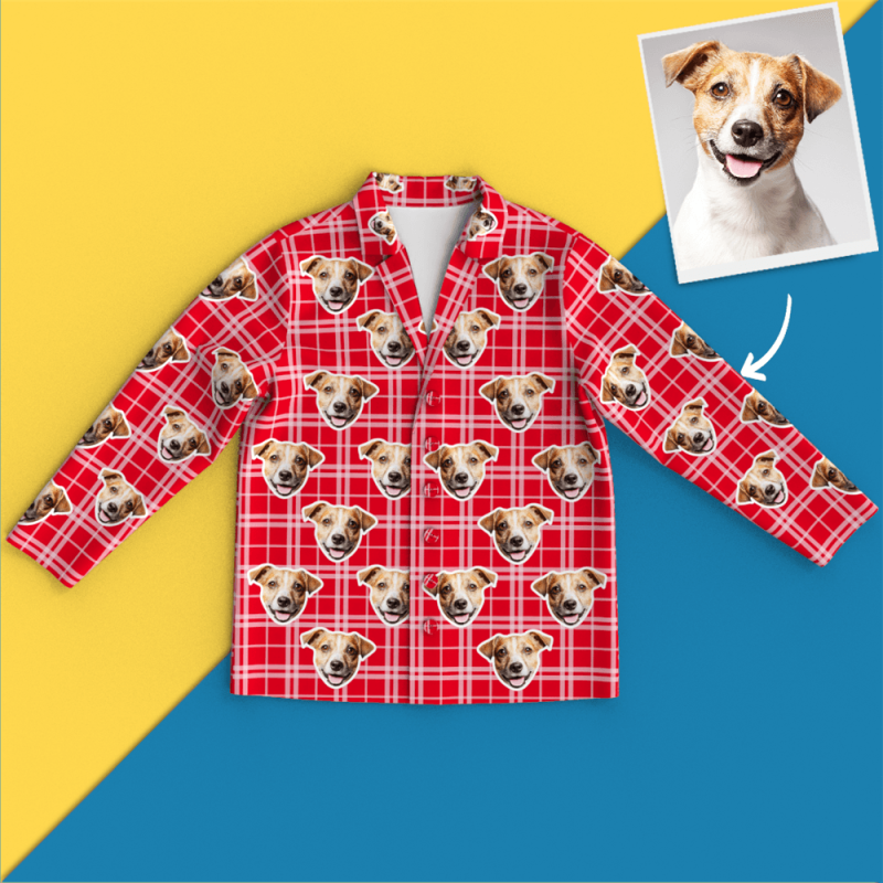 Benutzerdefinierte Gesicht Langarm rot Gitter Pyjama Freizeitkleidung
