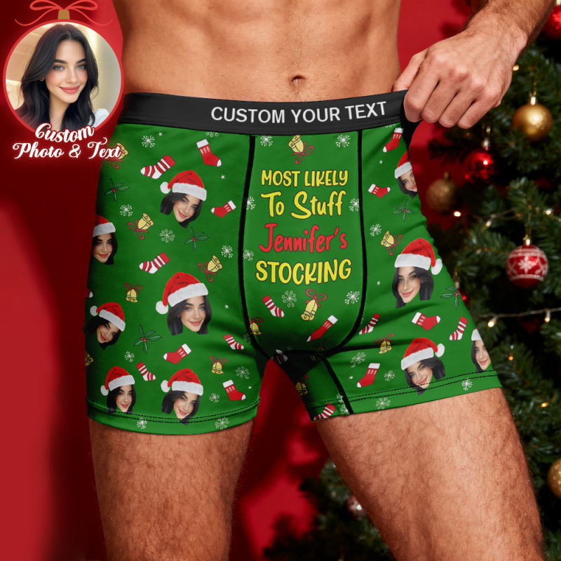 Personalisiertes Gesicht Herren Boxer Unterwäsche Most Likely To Stuff Your Stocking Black Boxer Geschenk Personalisiertes Foto Lustige Herren Boxer Briefs