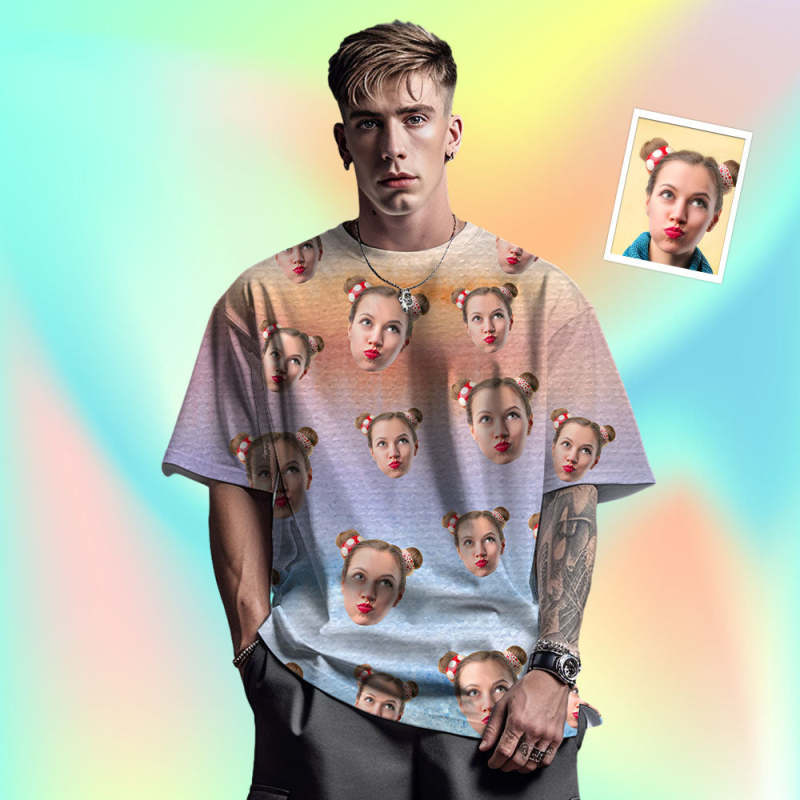 Benutzerdefiniertes Gesicht Herren-t-shirt, Personalisiertes Foto, Lustiges Farbtinten-t-shirt, Geschenk, 4 Stile