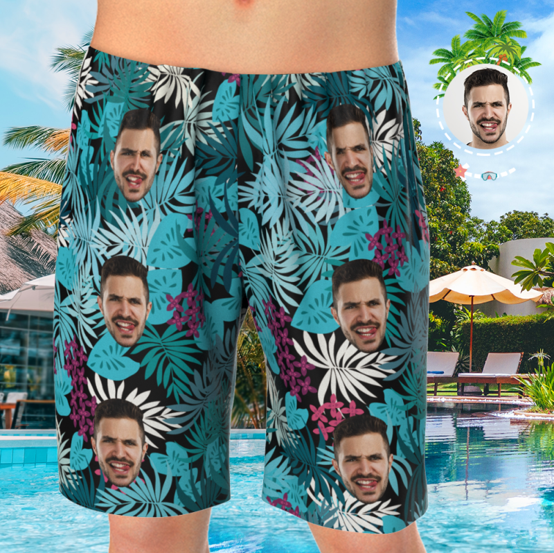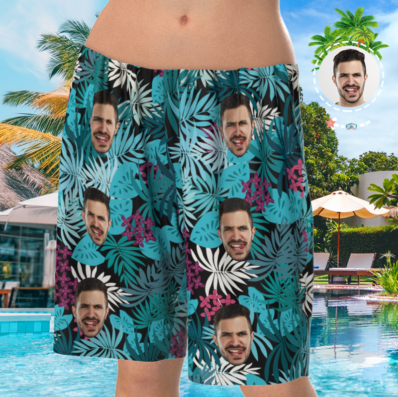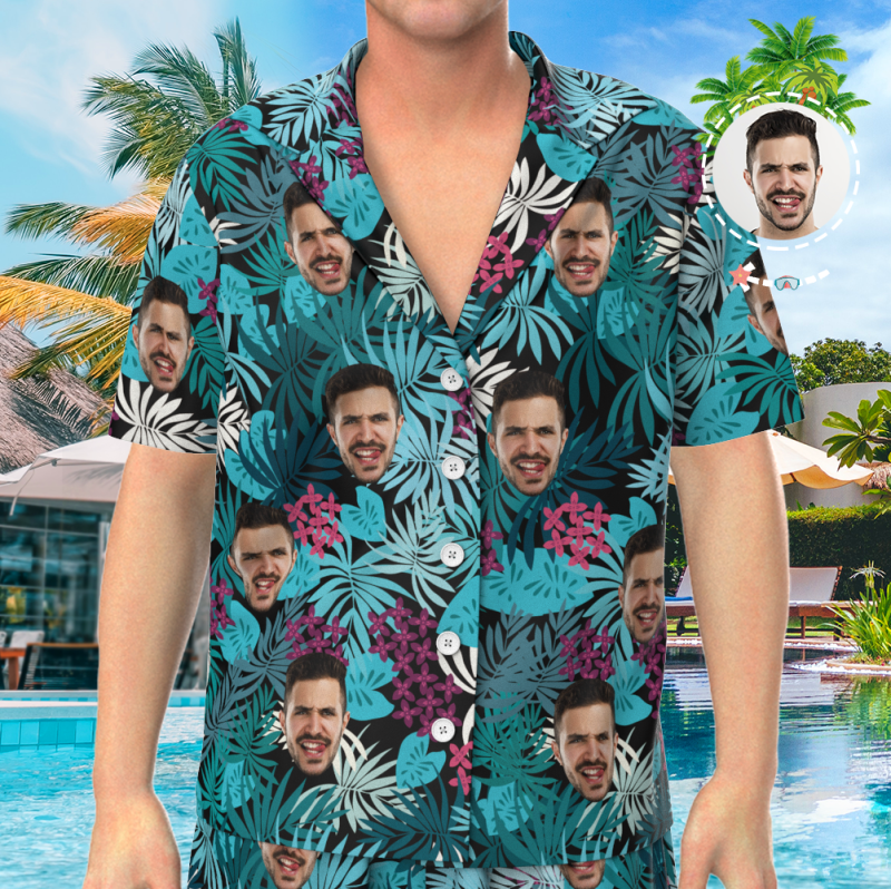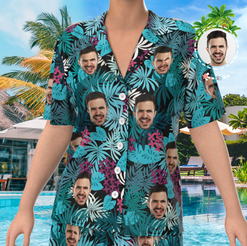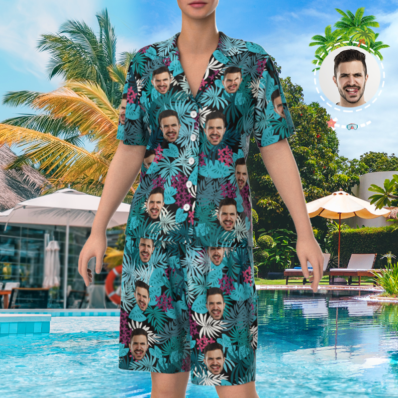 Custom Face On Pyjama Set, Kurzarm-nachtwäsche, Button-down-nachtwäsche - Courful Leaves