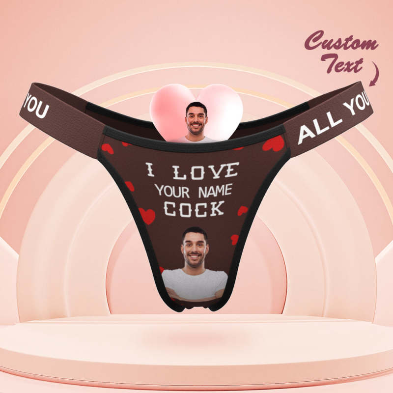 Personalisiertes Gesichtshöschen „love Your Cock“, Personalisierter Bund Mit Gravur, Tanga, Geschenk Für Sie