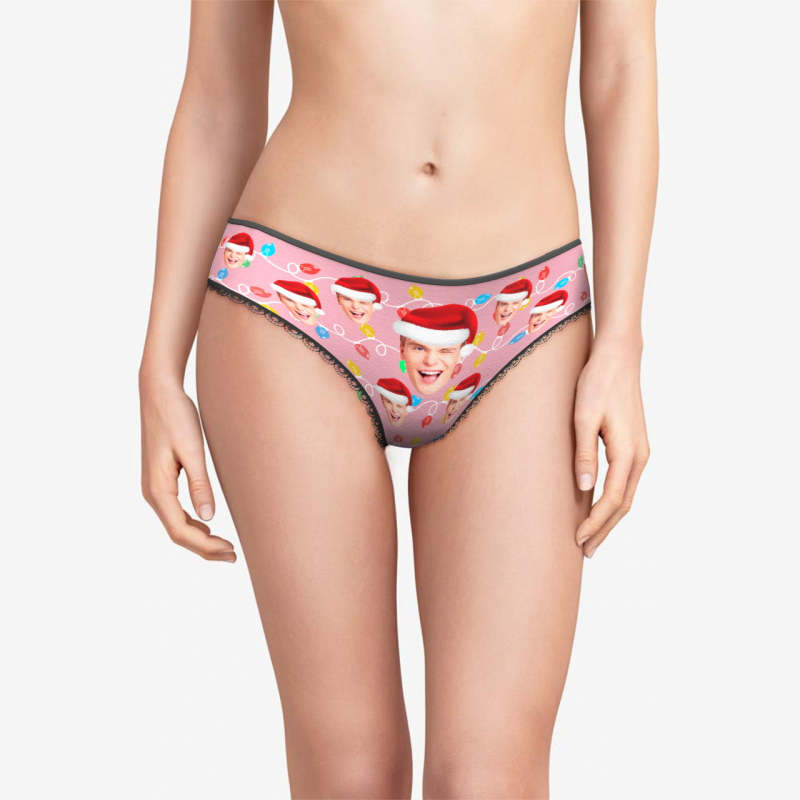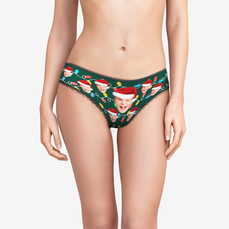 Benutzerdefinierte Gesichtshöschen, Personalisiertes Foto, Weihnachten, Weihnachts-leds, Spitzenhöschen Für Frauen