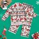 Benutzerdefinierte Gesicht Weihnachten Langarm-Pyjamas - weiß Rentier