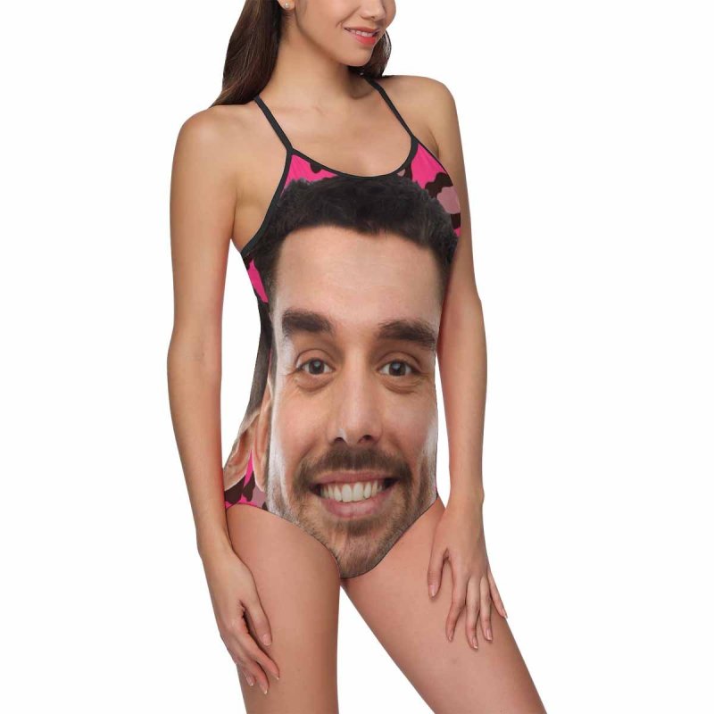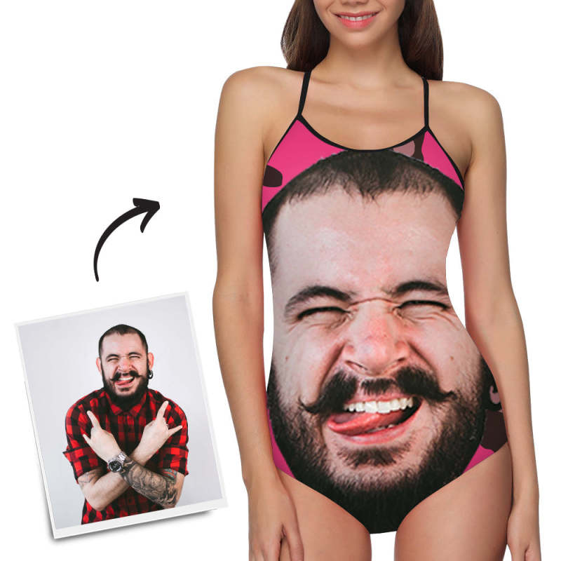 Benutzerdefinierte Gesichts-Badebekleidung Frauen Foto Unterhose Ein Stück Badeanzug Geschenk für sie - Rosa Hintergrund