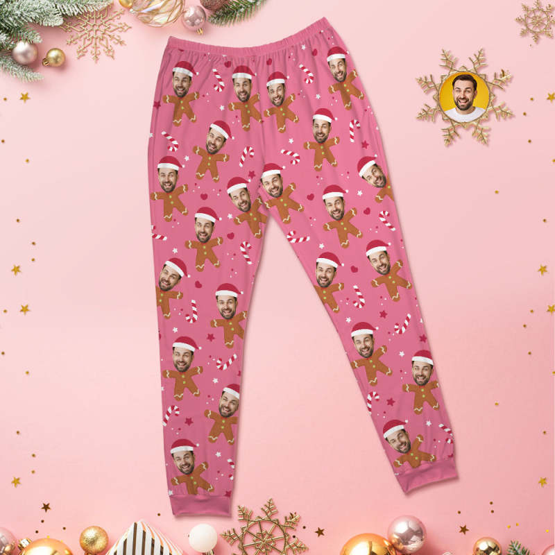 Custom Face Pink Pyjamas Personalisierter Rundhals-lebkuchen-weihnachtspyjama Für Damen Und Herren
