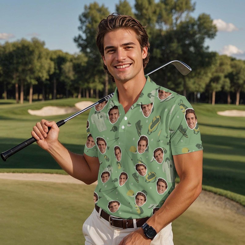 Poloshirt Mit Individuellem Gesicht Für Golfer, Mehrseitiger Stempeleffekt Auf Hemdgeschenken
