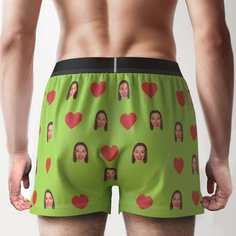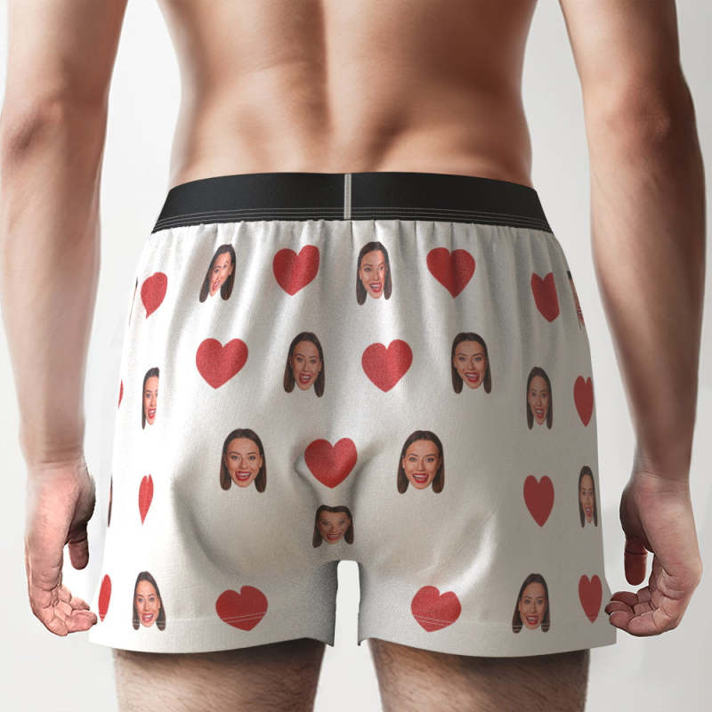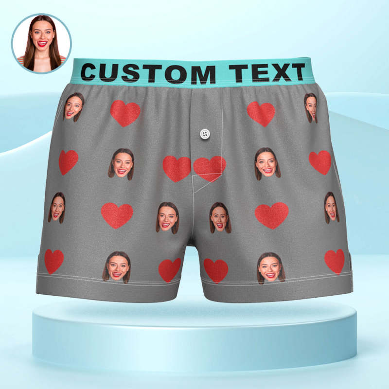 Custom Face Red Heart Design Boxershorts Mit Personalisiertem Text Auf Dem Bund. Personalisierte Unterwäsche Für Ihn