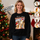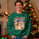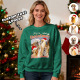 Benutzerdefiniertes Gesicht Rundhals-kapuzenpullover Benutzerdefiniertes Haustier Retro Vintage Portrait Grünes Weihnachts-sweatshirt