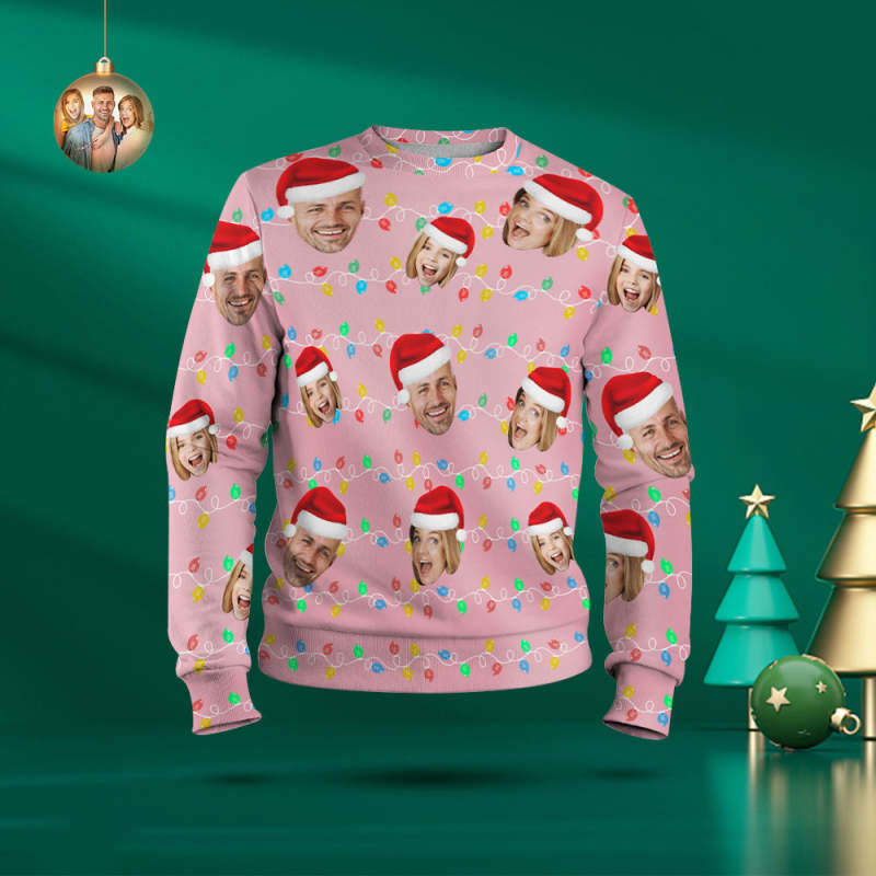 Benutzerdefiniertes Gesicht Rundhals-hoodie, Personalisiertes Foto, Weihnachten, Familie, Weihnachten, Leds, Unisex-hoodies