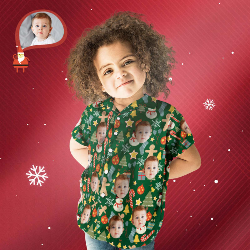 Benutzerdefiniertes Gesichts-shirt, Personalisiertes Foto, Hawaii-hemd F¨¹r Kinder, Weihnachts¨¹berraschungsgeschenk ¨C Frohe Weihnachten