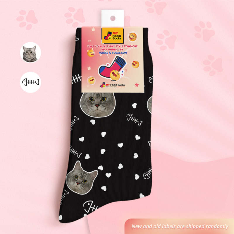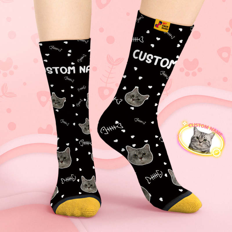 Benutzerdefinierte Gesichtssocken Personalisierte 3d-socken Mit Digitaldruck - Süßes Katzengesicht