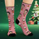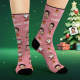 Benutzerdefinierte Gesichtssocken, Personalisiertes Foto, Rosa Socken „frohe Weihnachten“.