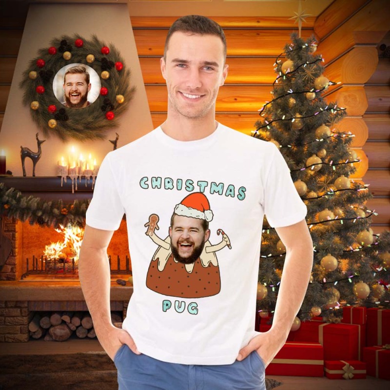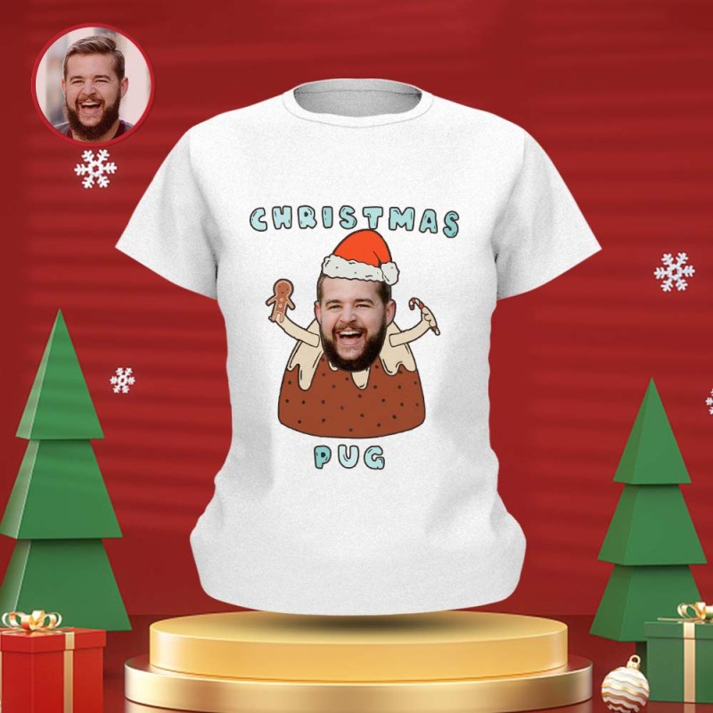 Benutzerdefiniertes Gesicht T-shirt Personalisiertes Foto Lustiges T-shirt Weihnachtsgeschenk Für Frauen Und Männer - Mops