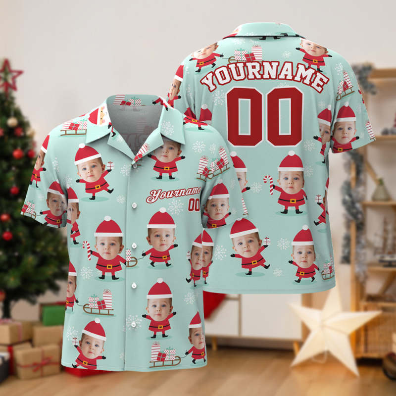 Hawaiihemden Mit Individuellem Gesicht, Personalisiertes Foto- Und Texthemd, Geschenk, Weihnachtshemden Für Herren, Weihnachtsmann Und Geschenke