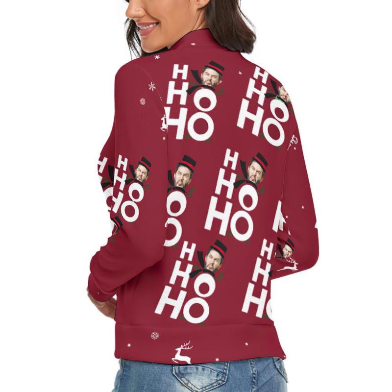 Benutzerdefiniertes Gesicht lRollkragenpullover für Damen Weihnachtspullover Gestrickte lose Pullover - Ho Ho Ho