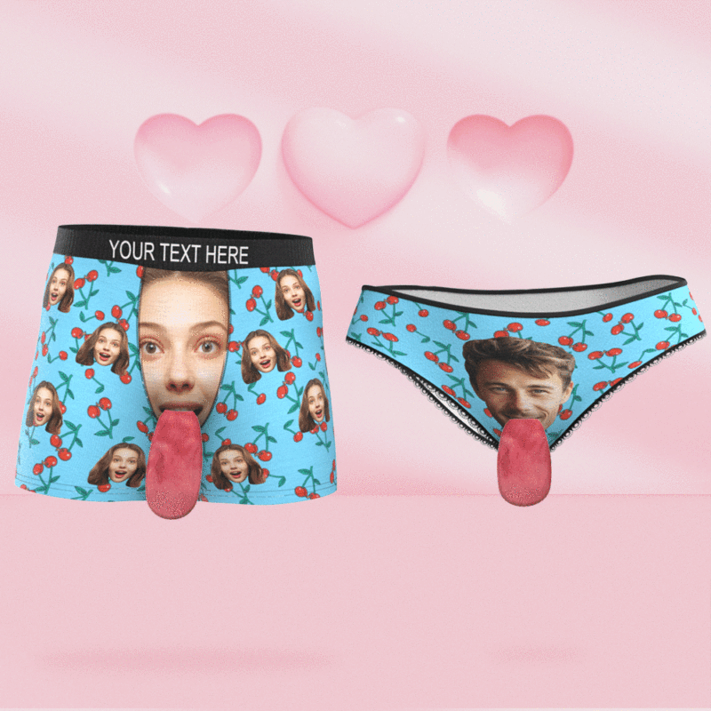 Benutzerdefinierte Gesichtsunterwäsche, Personalisierte Magnetische Zungenunterwäsche, Kirsche, Valentinstagsgeschenke Für Paare