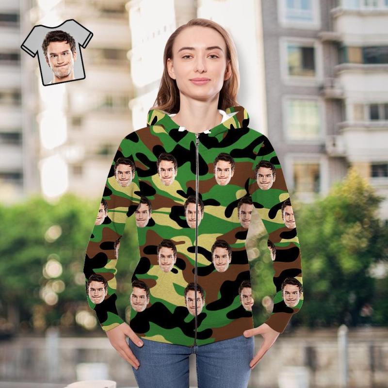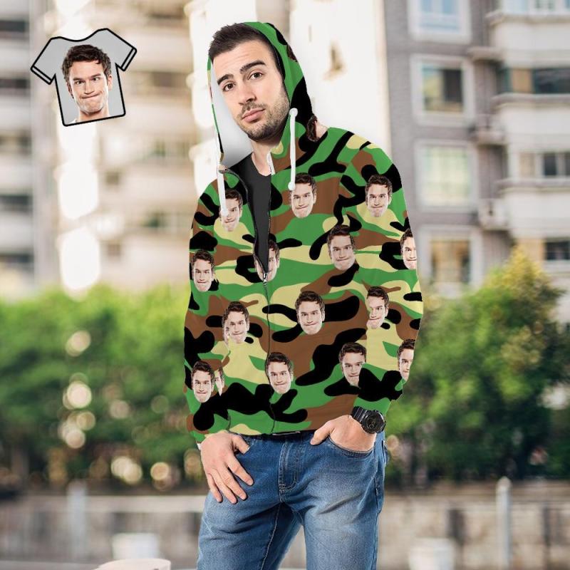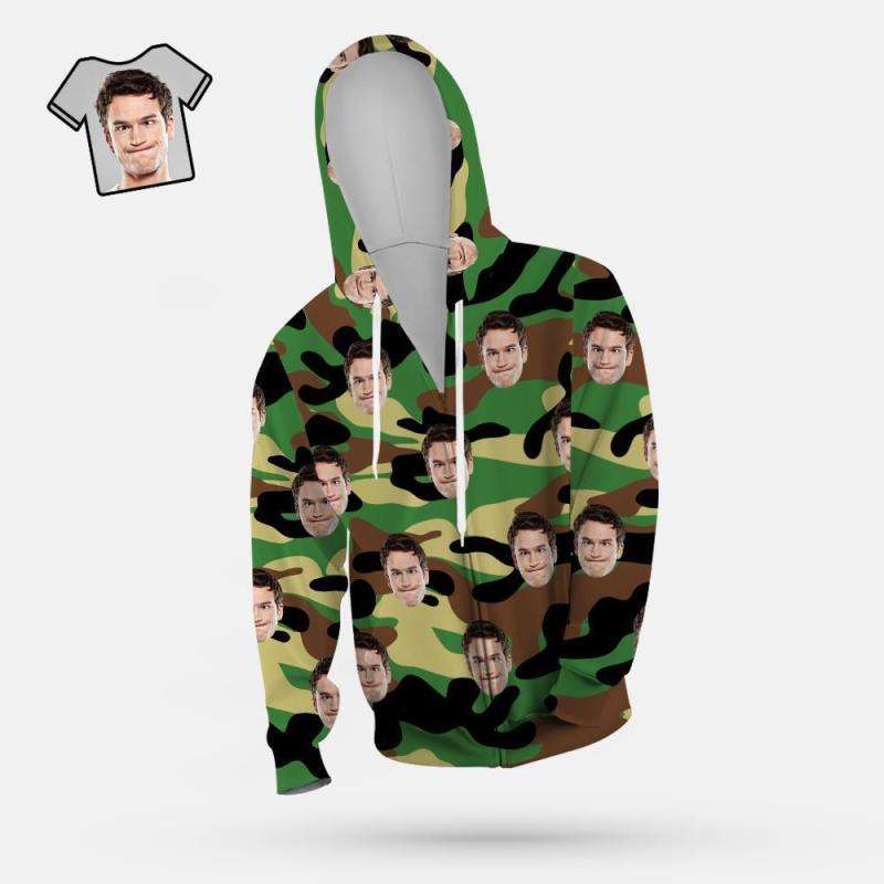 Custom Face Unisex Hoodie Lässige Bedruckte Dunkelgrüne Tarnung