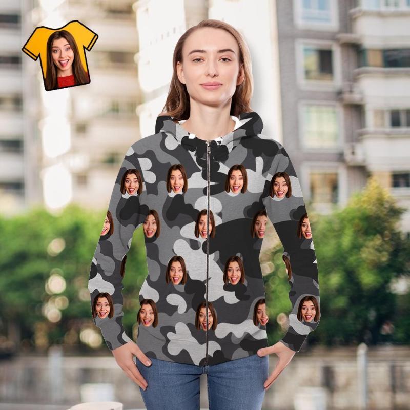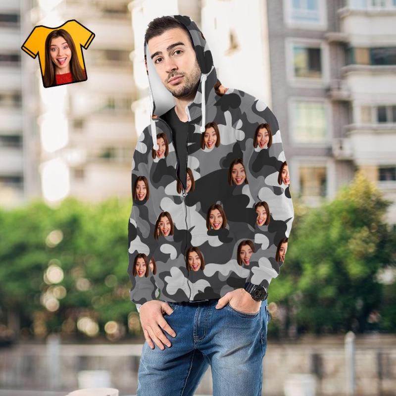 Custom Face Unisex Hoodie Lässige Bedruckte Dunkelgraue Tarnung